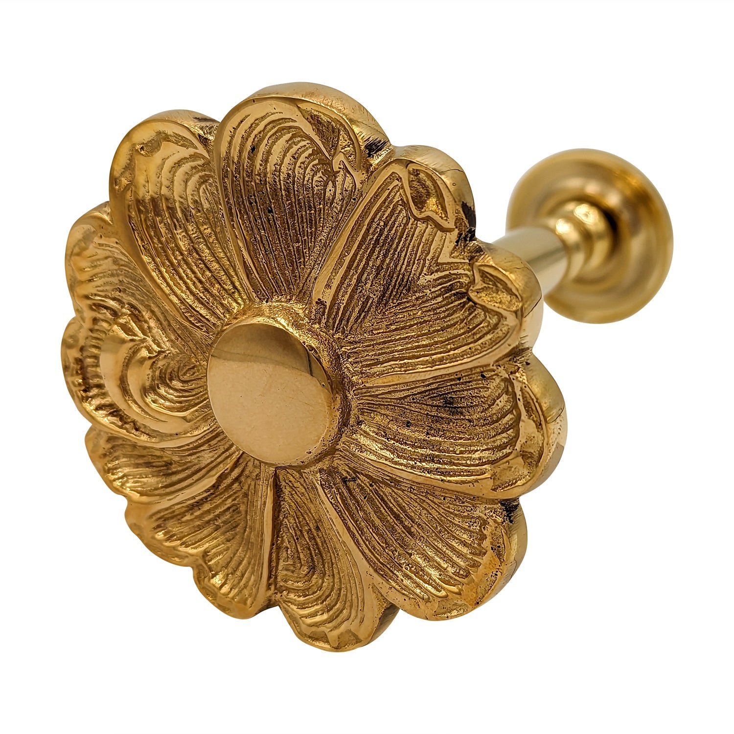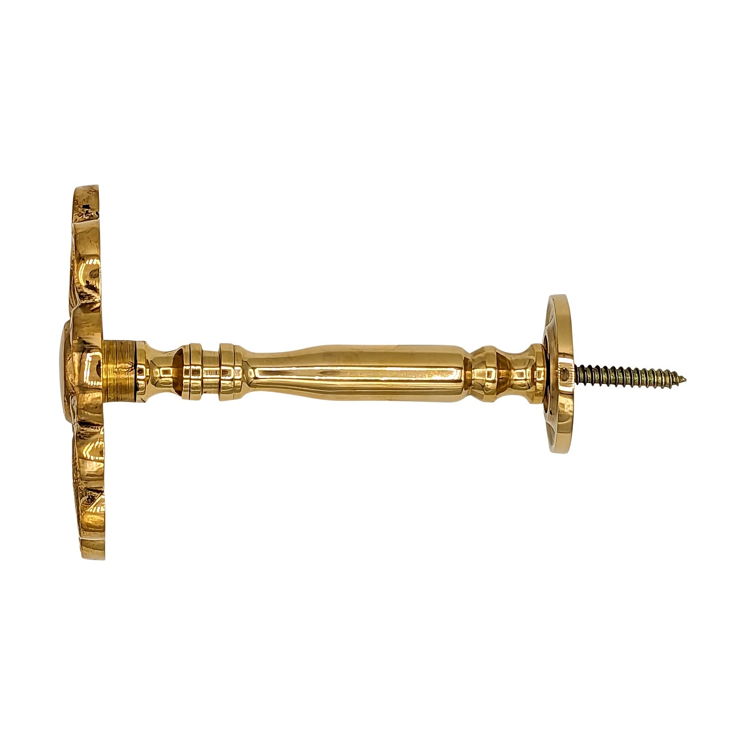 3 Inch Solid Brass Floral Curtain Tie Back (Polished Brass Finish) - These tiebacks have a Projection of 4 Inches. Sold Individually. Screws Directly Into Wall - No Mounting Hardware Needed. For proper installation, it is recommended to drill a pilot hole before securing the curtain tie back hardware, ensuring precise alignment and preventing breakage during installation.