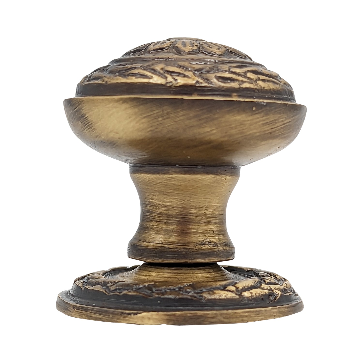 This solid brass round knob measures 1 1/4 inches in diameter with a projection of 1 7/20 inches. Available in polished brass, antique brass, Black Bronze, polished chrome, Satin Nickel and antique nickel.