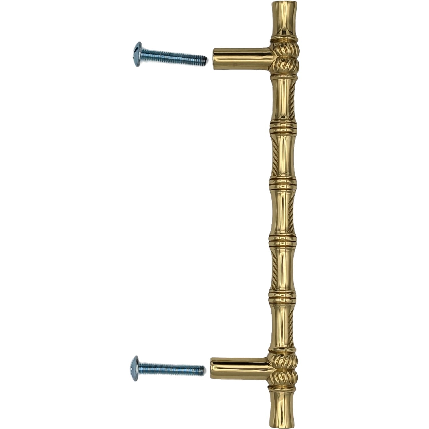 This Pull measures 6 inch long with 4 1/2 inch center-to-center spacing (4.50 c-c) and a projection of 1 1/4 inch. Comes complete with mounting hardware.