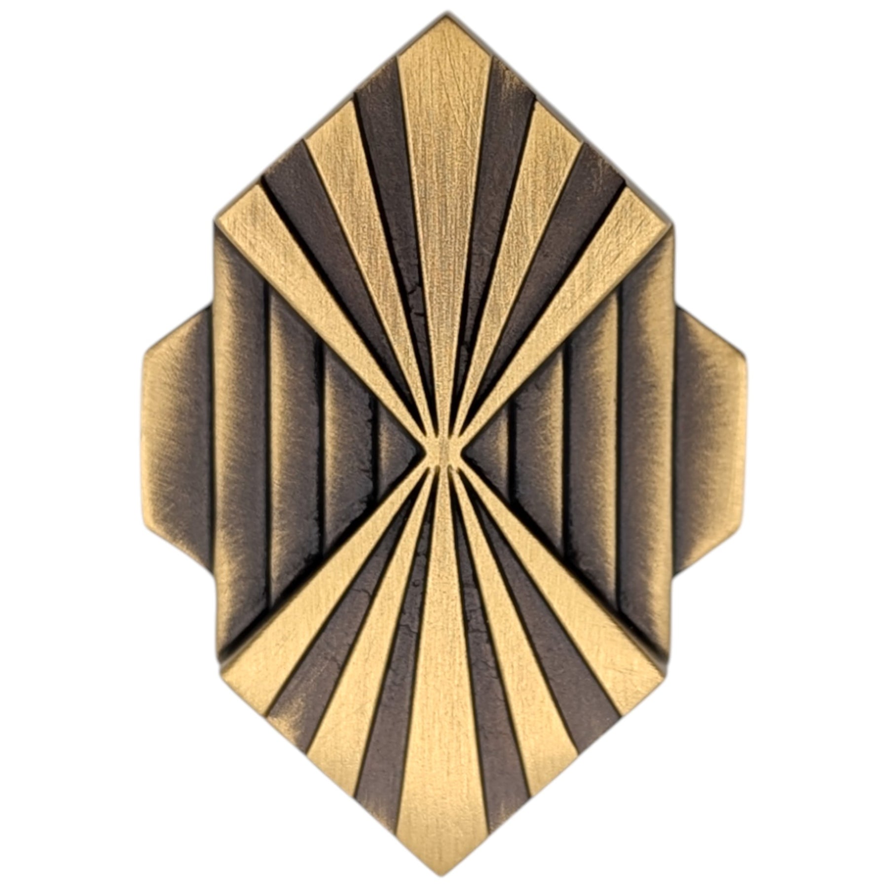 The Moderne Deco Cabinet Knob features bold geometric lines and a striking sunburst motif that captures the elegance of Art Deco design. Crafted from solid brass, this knob combines durability with vintage flair, making it an eye-catching addition to cabinets, drawers, and furniture. Pair it with coordinating pulls to create a cohesive, sophisticated look throughout your space.
