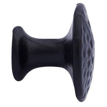 Each knob measures 1 3/8 inch in diameter with a 1 inch projection. Hand finished in USA. Solid Iron construction for decades of service. Comes in a smooth matte black finish. The average lead time for this knob is approximately 1 to 2 business days.