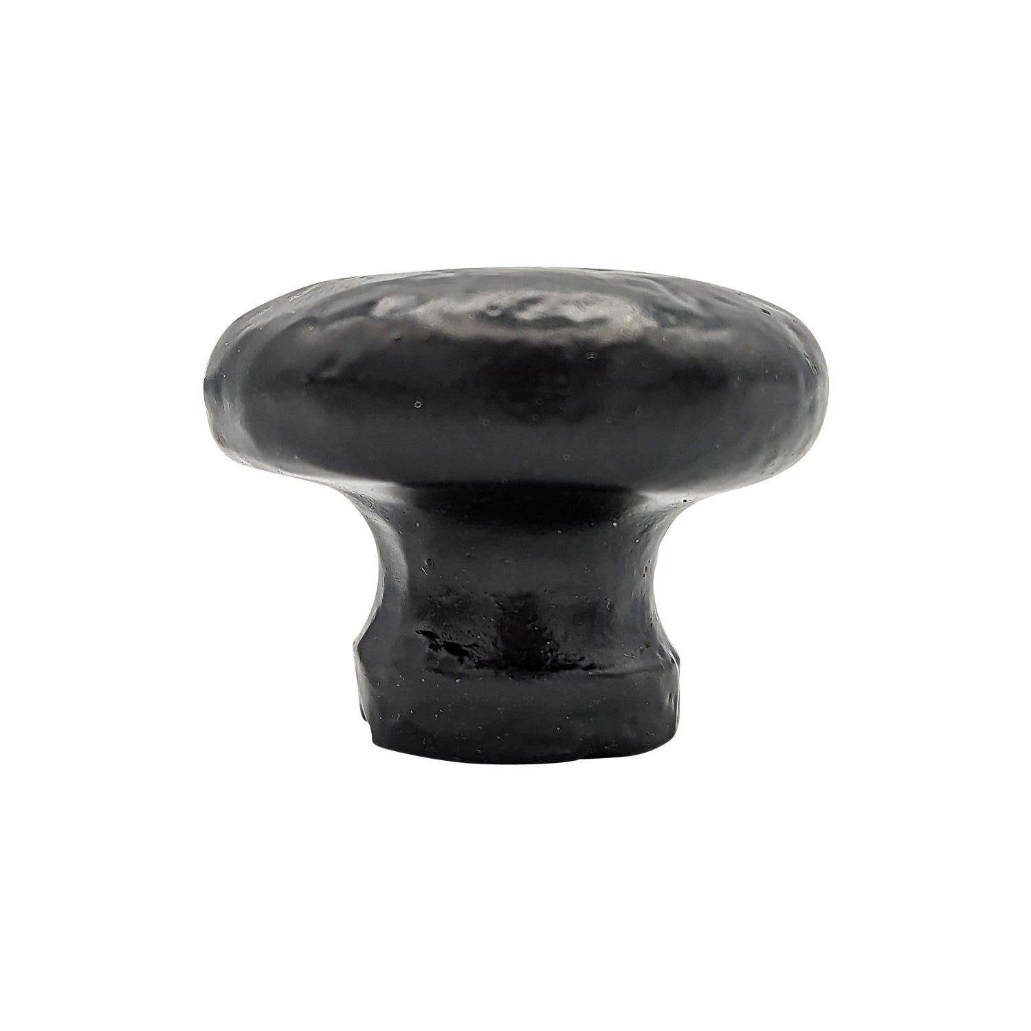 Solid Iron Round Cabinet Knob (Matte Black Finish) - each knob measures 1 3/8 inch in diameter with a 1 1/4 inch projection. Hand finished in Matte Black and made from Solid Iron for decades of service. This product has a ship time of 1 to 2 business days.