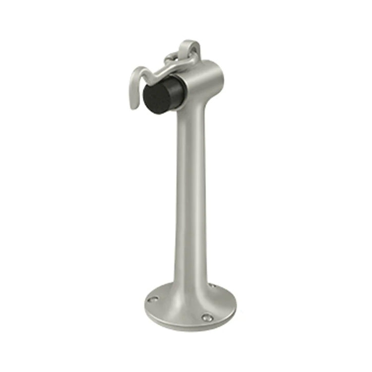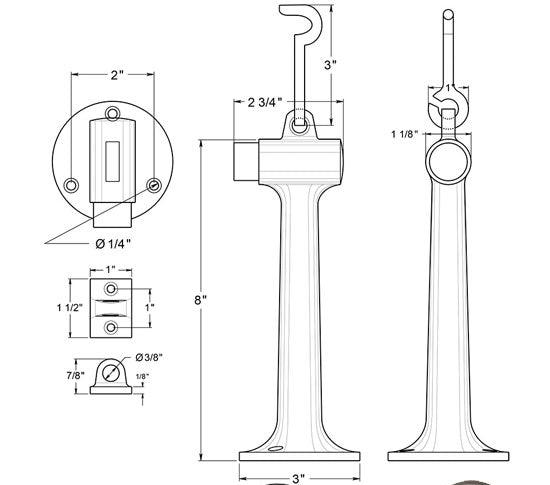 This solid brass universal modern floor mounted bumper measures 8 inches tall and 3 inches in diameter. It also comes complete with the mounting screws. This style of door stop provides protection for the door by preventing it from banging against a wall causing damage to drywall or plaster and paint. This door stop is available in Oil Rubbed Bronze and Brushed Nickel and comes complete with the mounting hardware. The average lead time for this particular product is 2 to 4 Business Days.