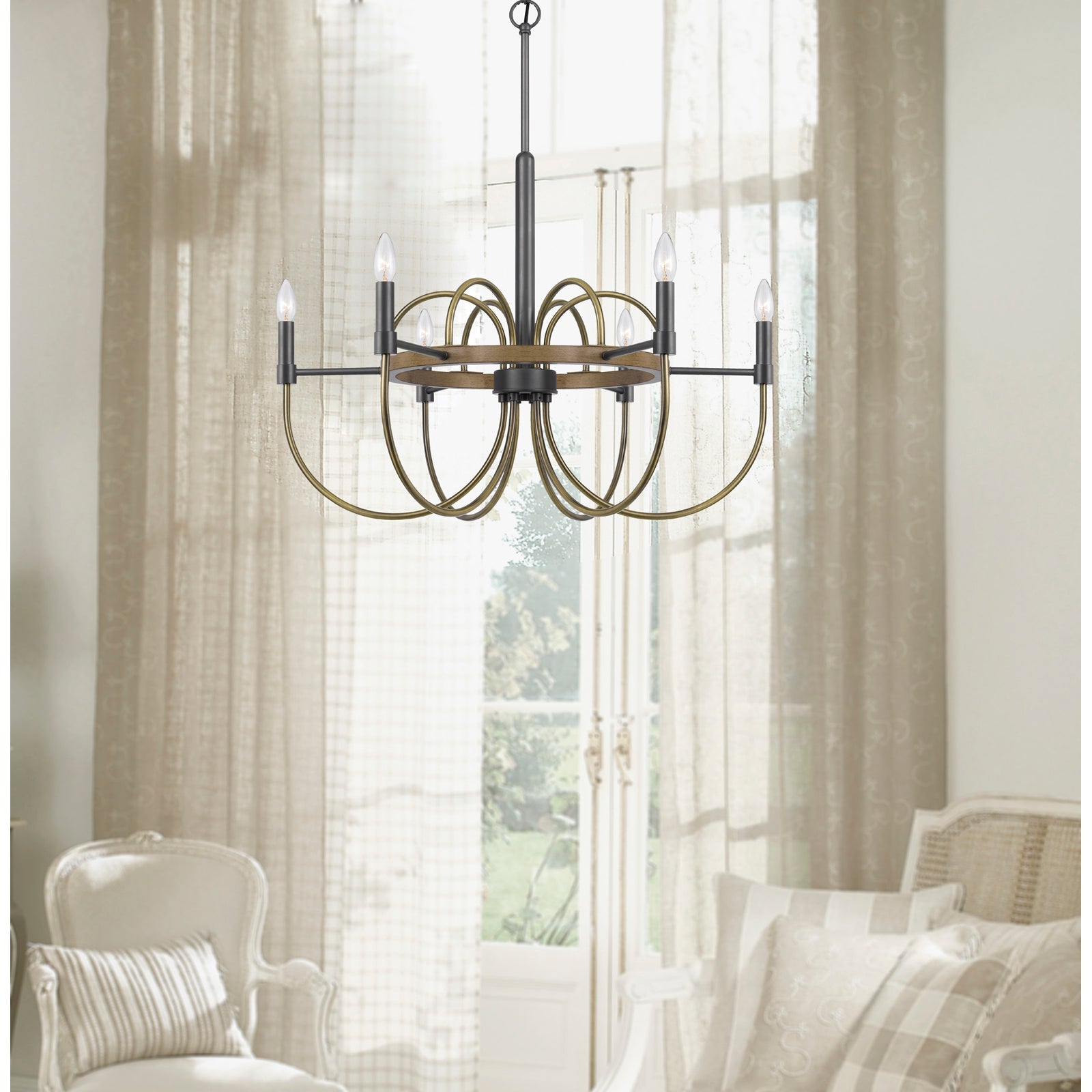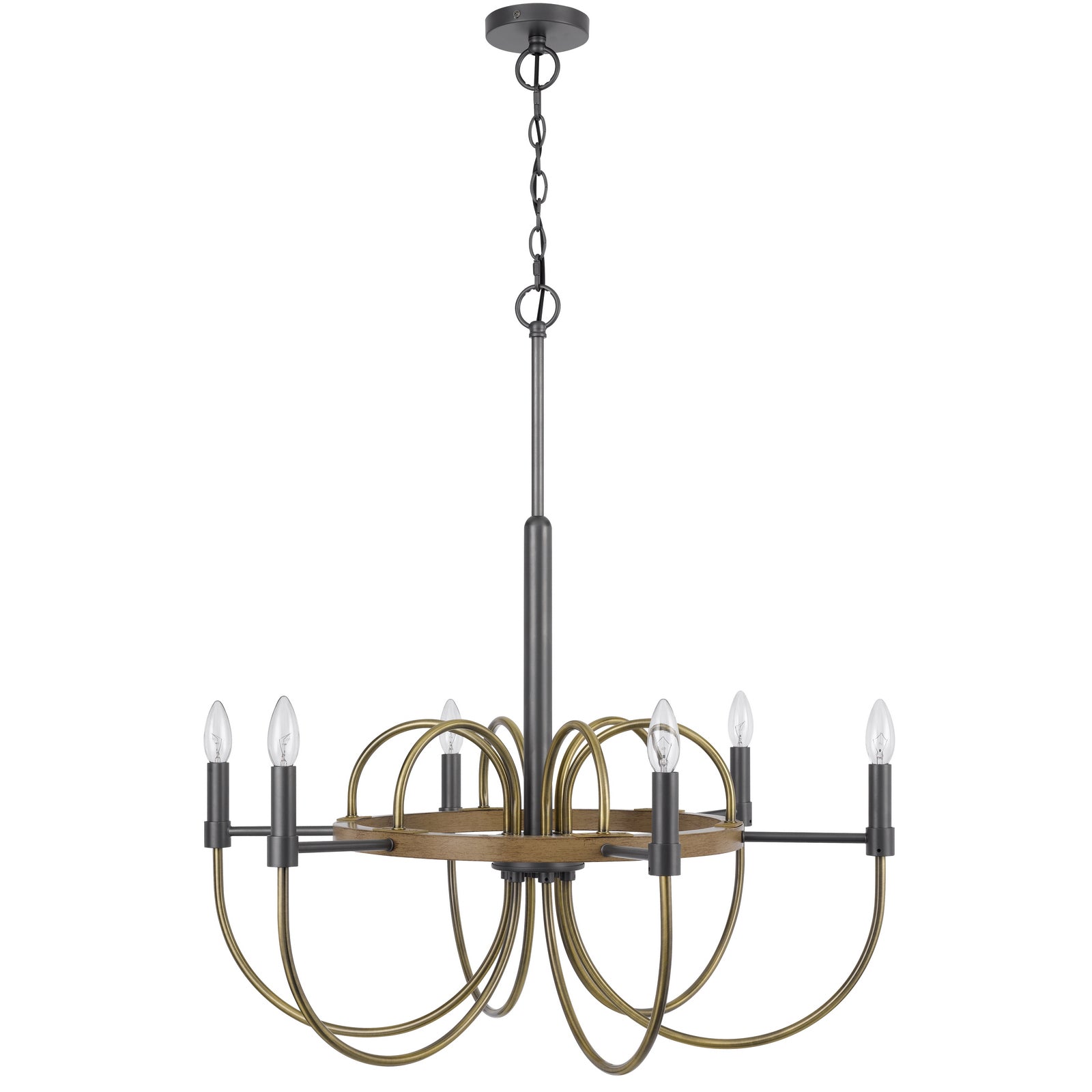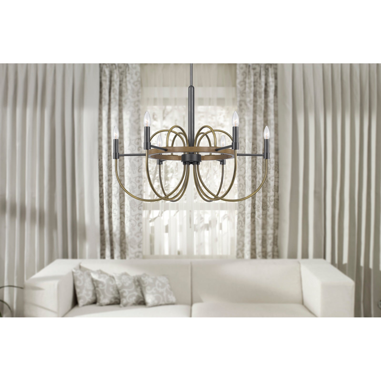 The Seagrove 60W x 6 Metal Chandelier is a contemporary interpretation of the classic candelabra design, perfect for enhancing the elegance of your home. This hardwired fixture features a durable metal construction complemented by a wooden circular center base, ensuring both style and longevity. With six E12 candelabra bulbs (not included) and a maximum wattage of 60W per bulb, this chandelier provides ample illumination. It comes with a 72-inch dark bronze chain for a striking appearance and ships in one carton, making assembly straightforward. The chandelier is backed by a one-year warranty, assuring peace of mind for your investment.