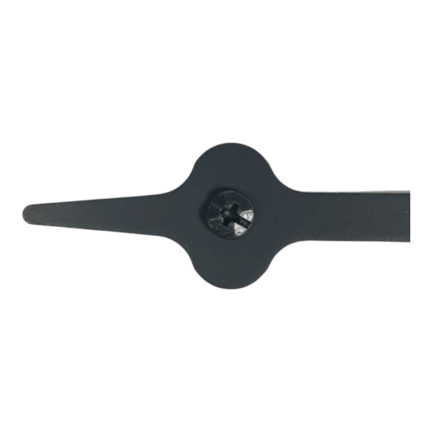 Solid cast iron spear strap hinge. Measures 9 inches long (228 mm) from the center of the hinge to the tip by 1 3/4 inches wide (44 mm) at the widest point. Comes complete with mounting hardware. The average lead time for this pair is approximately 3 to 5 business days.
