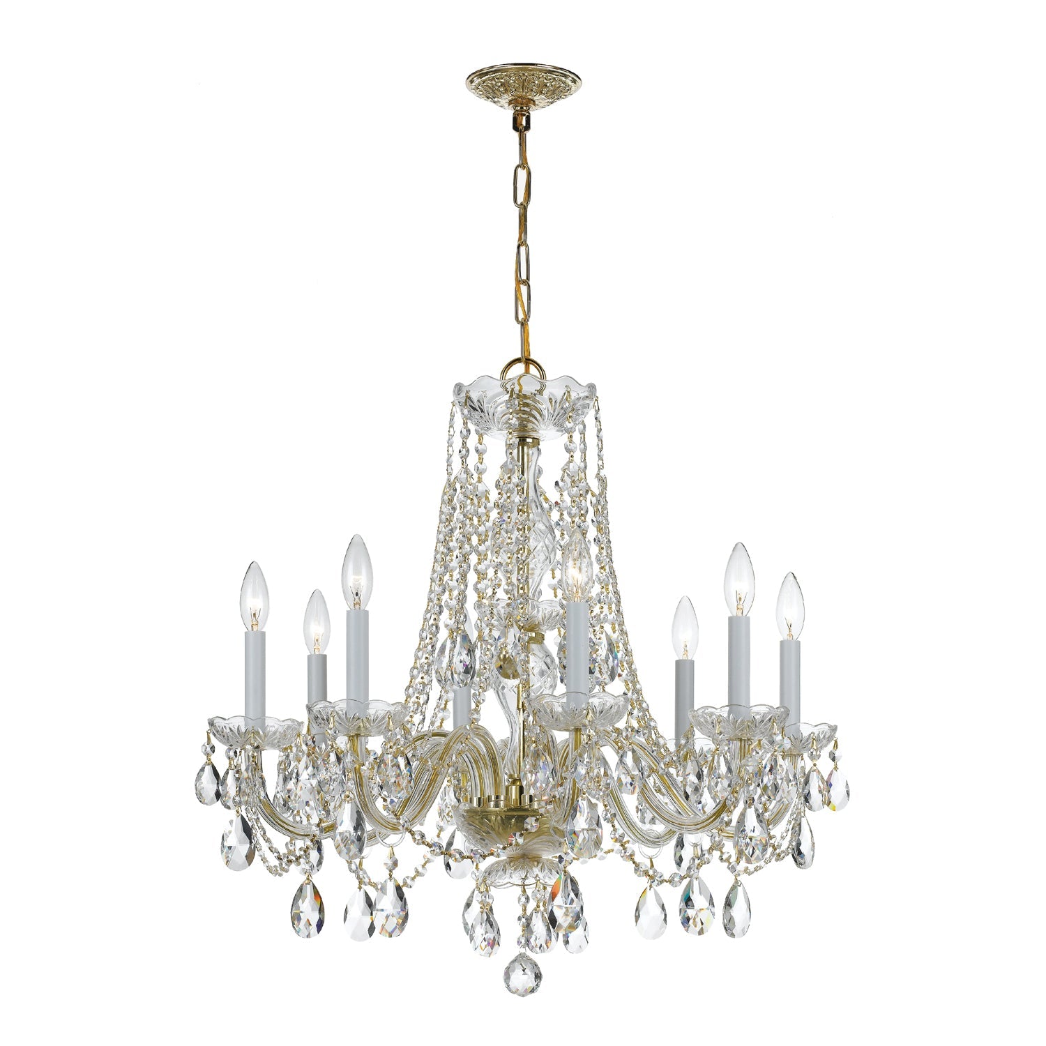 Traditional Crystal 8 Light Hand Cut Crystal Polished Brass Chandelier