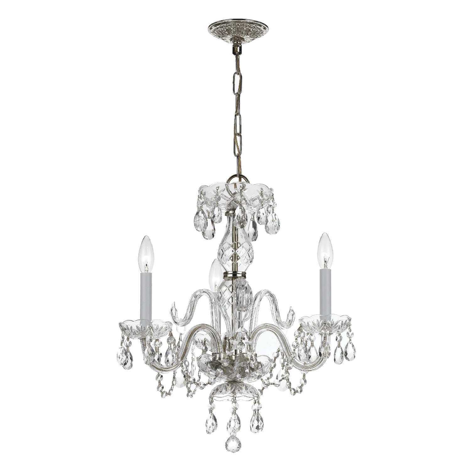 Traditional Crystal 3 Light Clear Italian Crystal Polished Chrome Mini Chandelier