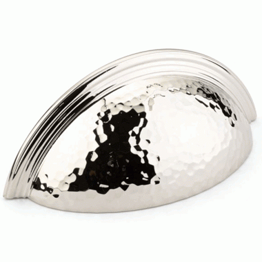 The Atherton cabinet cup pull is designed from solid brass material with a hammered style design and is available in several terrific finishes. Measures 4 1/2 inches overall with a 3 inch center to center mounting distance. Projection measures 1 1/2 inches and comes complete with mounting hardware. This particular product has an average lead time of approximately 3 to 5 business days.