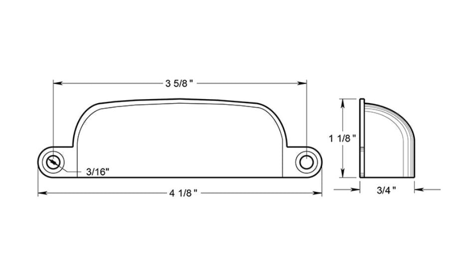 This Deltana cup pull is available in several finishes, including antique brass, polished brass, oil rubbed bronze, polished chrome, brushed chrome, brushed nickel and polished brass. This cup pull measures 4 inches overall and has a center to center measurement of 3 5/8 inches. The cup pull has a projection of 3/4 inch and comes complete with mounting hardware. This product has a lead time of approximately 3 to 5 business days.
