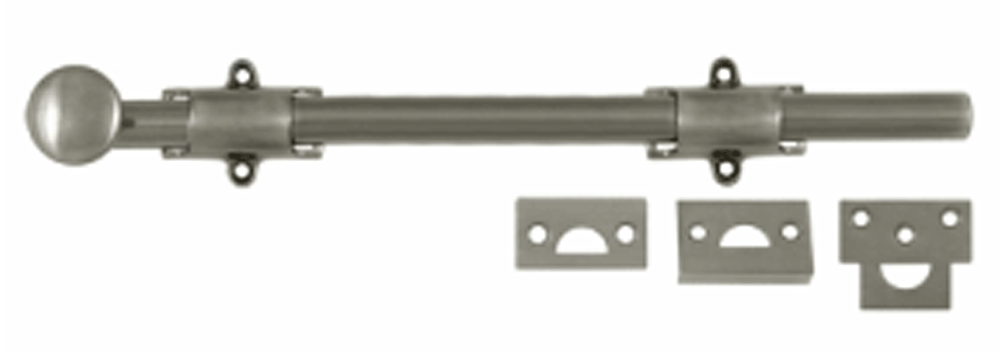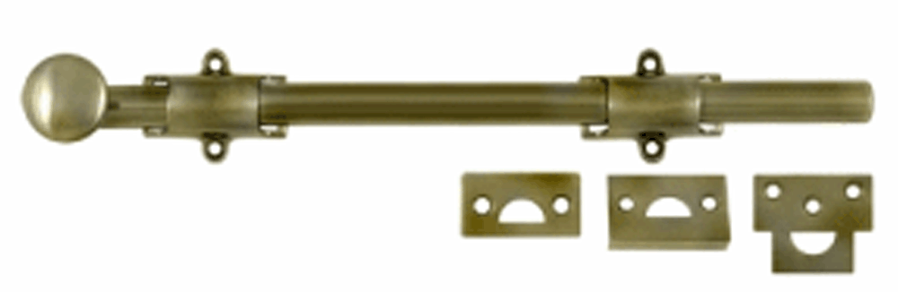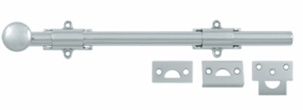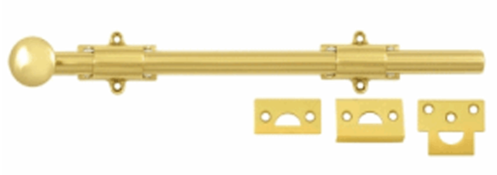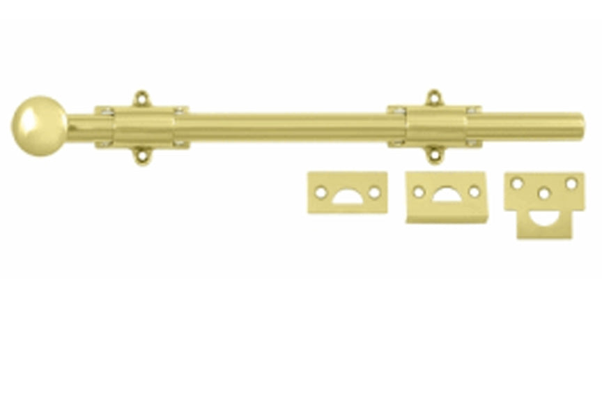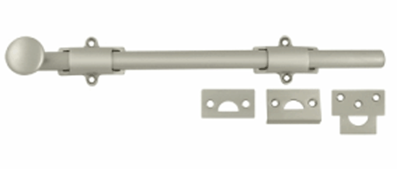 The Deltana surface bolt are designed to be mounted on the inside of doors as way of providing extra security. Available in a variety of finishes and several different matching strikes. Measures 12 inches tall by 5/8 inches wide. This particular product has a lead time of approximately 3 to 5 business days.