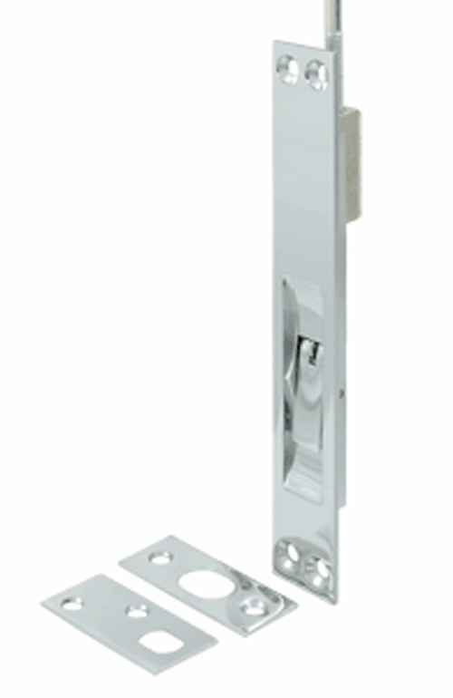 The Deltana extension flush bolt is designed with a solid cam mechanism that allows for a smooth opening and closing action. Extension rod made of sleek stainless steel. Bolt measures 6 3/4 inches by one inch wide. Extension rod measures 24 inches. Comes in a variety of finishes. Available in several finishes, including polished brass, antique brass, oil rubbed bronze, polished chrome and brushed nickel. The average lead time for this flush bolt is approximately 3 to 5 business days.