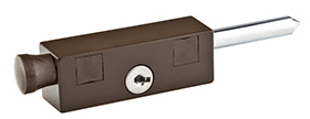 This patio door bolt is constructed from brass and measures 6 1/8 inches end-to-end. The lock body is 3 3/4 inches long by 1 inch wide and comes in 4 colors, Bronze, Black, White, and Silver. Includes screws. The average lead time for this particular product is 3 to 5 Business Days.