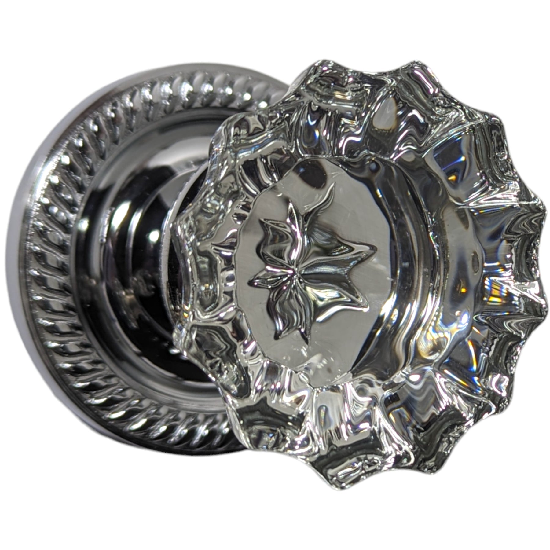 ##Antique Hardware## Georgian Roped Rosette Door Set with Fluted Crystal Door Knobs (Several Finishes Available)