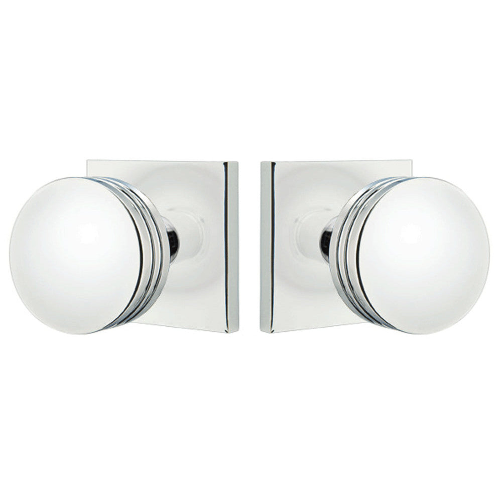 Emtek Solid Brass Bern Door Knob Set With Square Rosette - Made for modern doors - versatile, elegant, adaptable - this Solid Brass Bern style door knob set comes complete with a square style rosette. This door knob set is available in several finishes and functions. Passage (Hall/Closet) and Privacy (Bed/Bath) sets come complete with the functioning hardware and a 2 3/8 inch back-set is standard. A 2 3/4 inch back-set is also available upon request. This particular product has a lead time of approximately 3 to 5 business days.