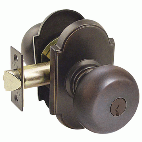 This door knob is constructed from solid brass and measures 2 5/16 inches overall with a 2 5/8 inch projection. Thumb turn locking mechanism on adjoining knob. The finish is shown in Oil Rubbed Bronze and it is also available in a variety of other finishes. Includes adjustable latch (2 3/8 inches and 2 3/4 inches backsets), strikeplate, two levers and two door rosettes. This set is made for modern doors and it fits any door thickness between 1 1/4 inch to 1 7/8 inches thick. Key-in knobs are larger than double dummy and non-locking knobs to accommodate the lock. This door lever set comes complete with mounting hardware. The average lead time for this knob set is approximately 3 to 5 business days.