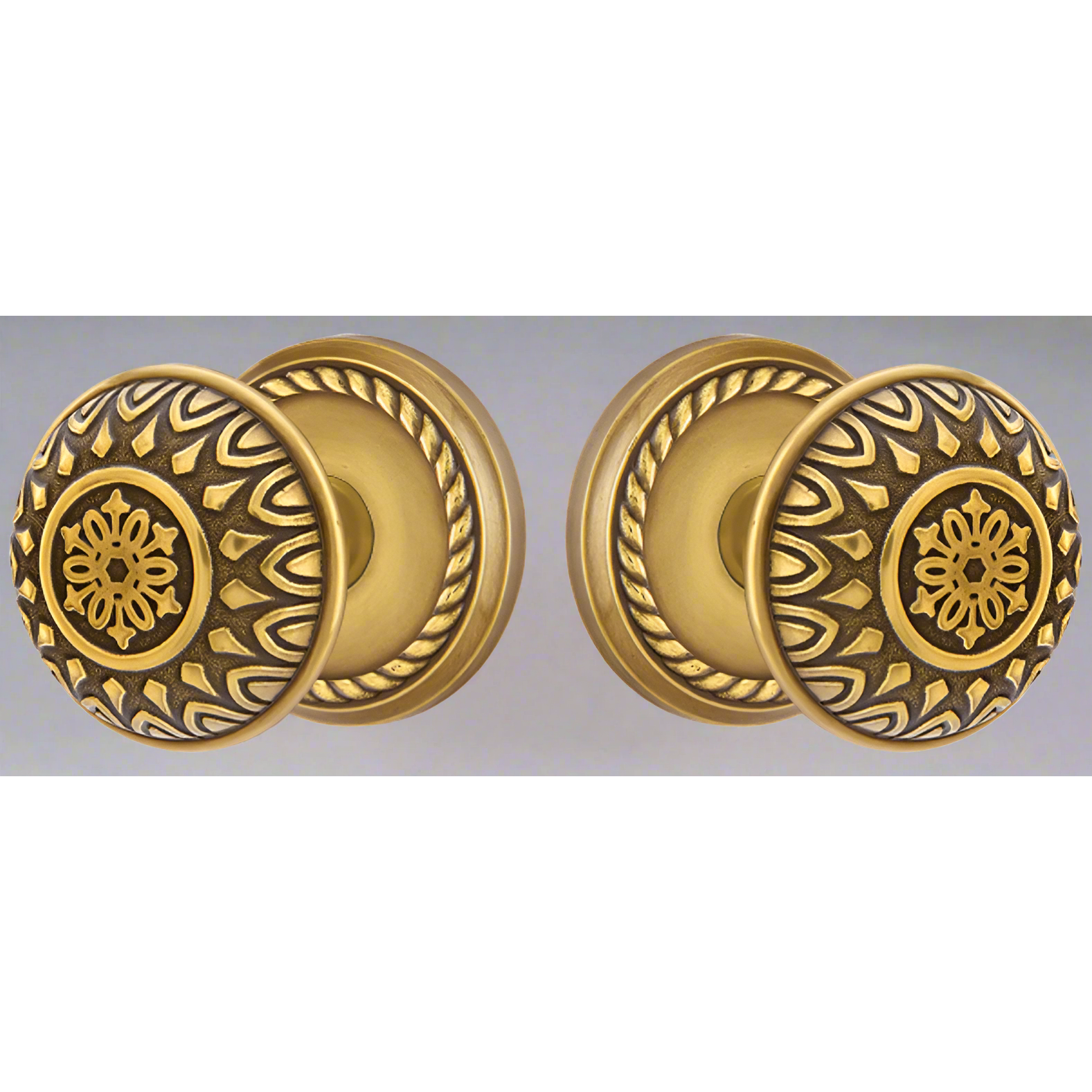 Solid Brass Lancaster Door Knob Set With Rope Rosette - The Lancaster style door knob set features a stylish design and is constructed from solid brass material. Measures 2 7/16 inches overall with a 2 1/2 inch projection. Includes a 2 1/4 inch projection. Functional sets come complete with the functioning hardware and a 2 3/8 inch backset is standard. A 2 3/4 inch backset is also available upon request. Comes complete with mounting hardware. This particular product has a lead time of approximately 3 to 5 business days.