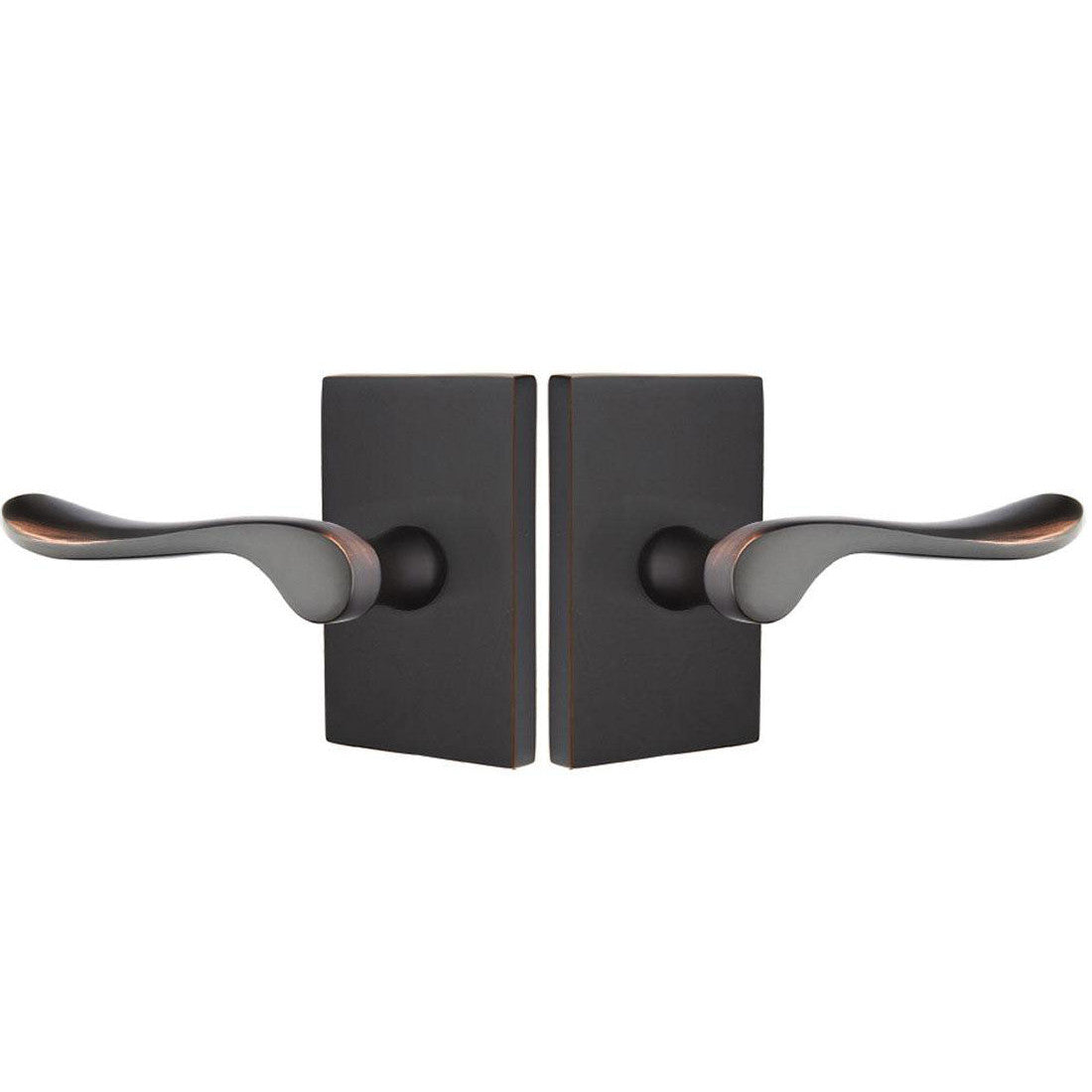 The brass lever door knob shown here measures 4 3/4 inches in length with a 2 1/4 inch projection. The modern rectangular rosette measures 2 1/2 inches wide by 4 inches long. Includes the two levers and door rosettes. Functional sets also include the lever latch, face plate and strike plate. This set is made for modern doors and it fits any door thickness between 1 3/8 inch to 2 1/4 inches thick. Functional sets come with a 2 3/8 inch back set latch - and a 2 3/4 inch back set may be requested at no additional charge. This door lever set comes complete with mounting hardware. Handing is required for leversets. The average lead time for this particular product is 3 to 5 Business Days.