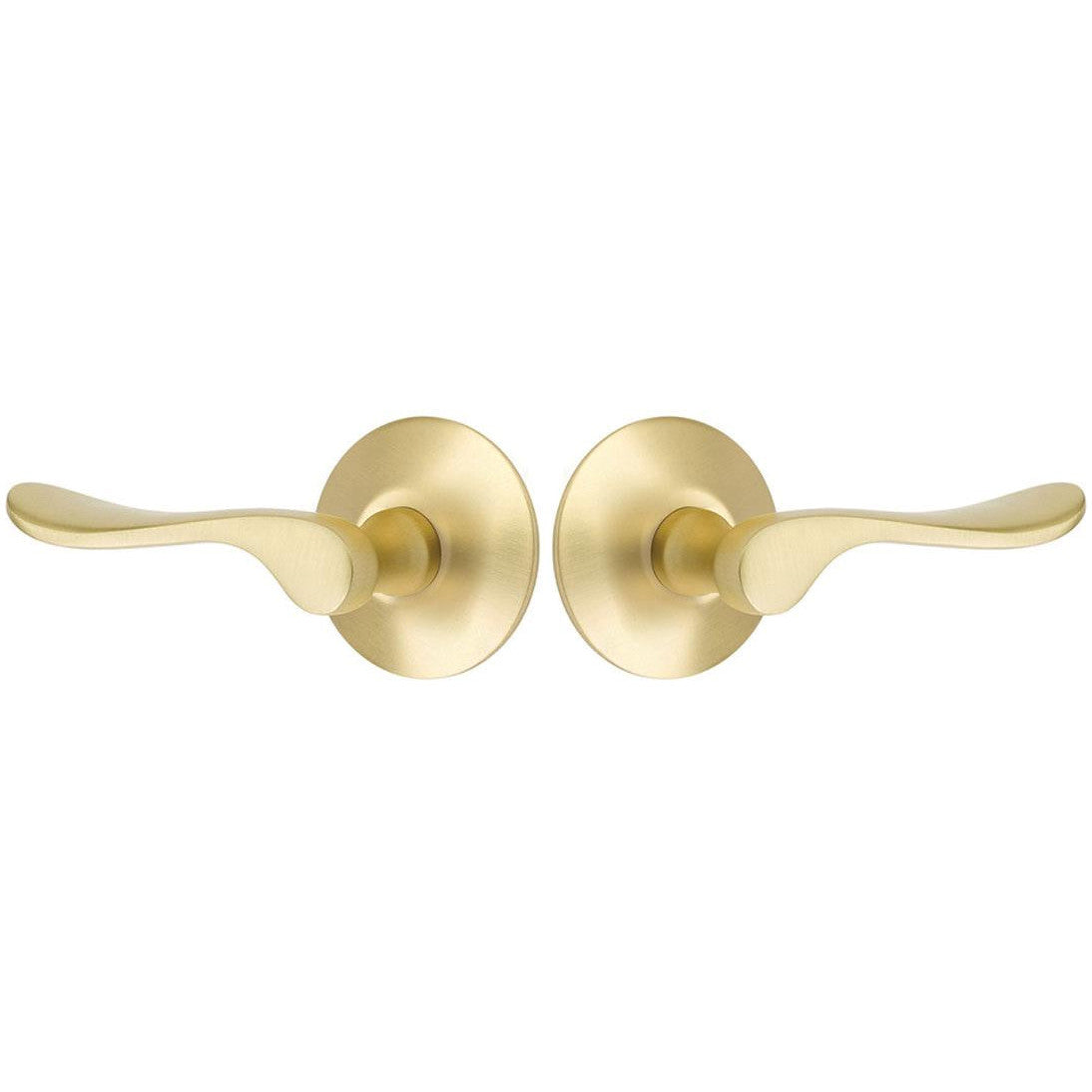 The brass lever door knob shown here measures 4 3/4 inches in length with a 2 1/4 inch projection. Includes the two levers and door rosettes. Functional sets also include the lever latch, face plate and strike plate. This set is made for modern doors and it fits any door thickness between 1 3/8 inch to 2 1/4 inches thick. Functional sets come with a 2 3/8 inch back set latch - and a 2 3/4 inch back set may be requested at no additional charge. This door lever set comes complete with mounting hardware. Handing is required for leversets. Comes in a variety of finishes including Polished Brass, Satin Brass, Oil Rubbed Bronze, Flat Black, Polished Chrome, Polished Nickel, and Satin Nickel. The average lead time for this particular product is 3 to 5 Business Days.