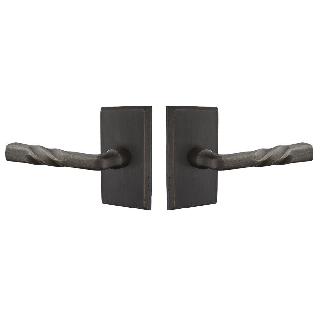 This lever door knob is constructed from solid brass and measures 4 7/8 inches overall with a 2 3/8 inch projection. Includes the two levers and door rosettes. Functional sets also include the lever latch, face plate and strike plate. Available in medium bronze, matte black or tumbled white bronze. This set is made for modern doors and it fits any door thickness between 1 3/8 inch to 2 1/4 inches thick. Functional sets come with a 2 3/8 inch back set latch - and a 2 3/4 inch back set may be requested at no additional charge. This door lever set comes complete with mounting hardware. Handing is required for leversets. A customer service agent will contact you when the order is placed to discuss handing options. The average lead time for this lever is approximately 3 to 5 business days.