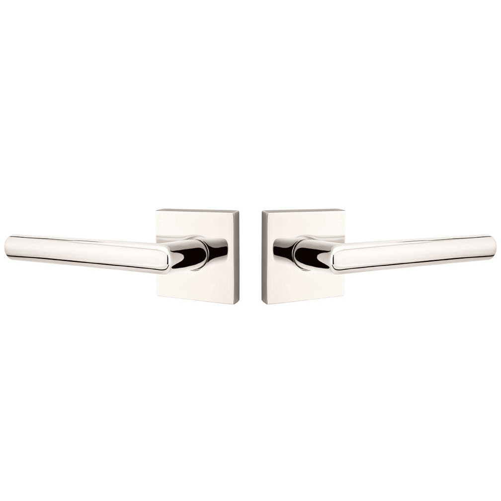 This brass lever door knob measures 6 inches overall with a 2 1/2 inch projection. Includes the two levers and door rosettes. Functional sets also include the lever latch, face plate and strike plate. Available in several finishes. This set is made for modern doors and it fits any door thickness between 1 3/8 inch to 2 1/4 inches thick. Functional sets come with a 2 3/8 inch back set latch - and a 2 3/4 inch back set may be requested at no additional charge. This door lever set comes complete with mounting hardware. Does not fit into Modern rosette. Handing is required for leversets. A customer service agent will contact you when the order is placed to discuss handing options. The average lead time for this lever is approximately 3 to 5 business days.