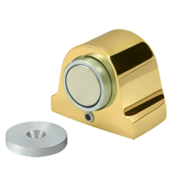 This magnetic door hold measures approximately 1 3/8 inches and mounts directly to the floor with a concealed mount. Small metal disk attaches to the door. The stop is spring loaded and magnetic to catch and hold the door. Comes complete with the mounting hardware. Comes in several finishes including Polished Brass, Antique Brass, Oil Rubbed Bronze, Flat Black, Polished Chrome, Brushed Nickel and Antique Nickel. This particular product has a lead time of 2 to 3 business days.