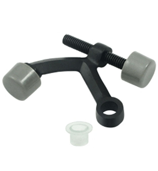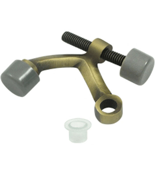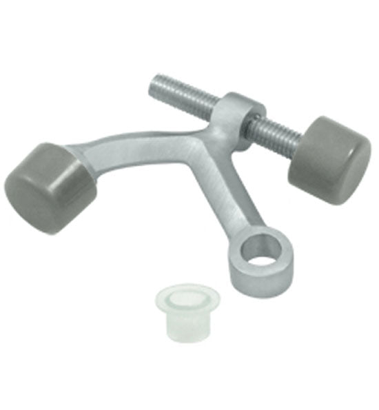 This door stop measures approximately 2 3/8 inches long. Hinge pin door stops are used when a traditional spring or rigid door stop cannot be installed onto a base board. This style of door stop requires no mounting hardware - and it attaches to the pin of a hinge. This is available in several designer finishes. This particular product has a lead time of approximately 3 to 4 business days.