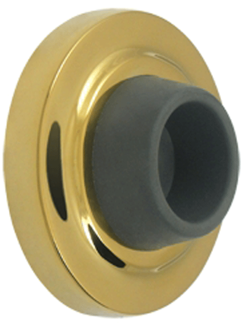 This bumper guard measures 2 3/8 inches in diameter and comes with a two-screw concealed mount. Comes complete with the mounting hardware. This style of bumper guard stops it from banging against a wall causing damage to drywall or plaster and paint. This door stop is available in many designer finishes including Polished Brass, Antique Brass, Oil Rubbed Bronze, Polished Chrome, Brushed Nickel, Lifetime Polished Brass, and Antique Nickel. The average lead time for this particular product is 2 to 3 business days.