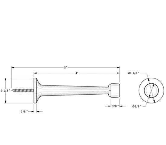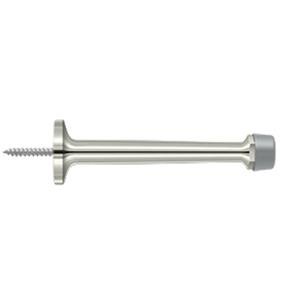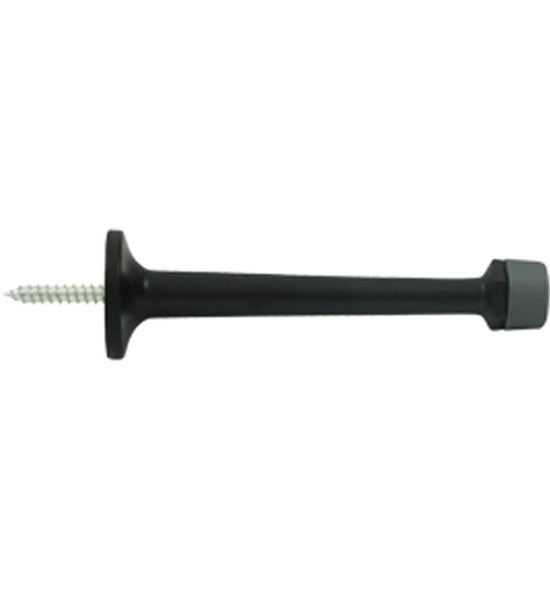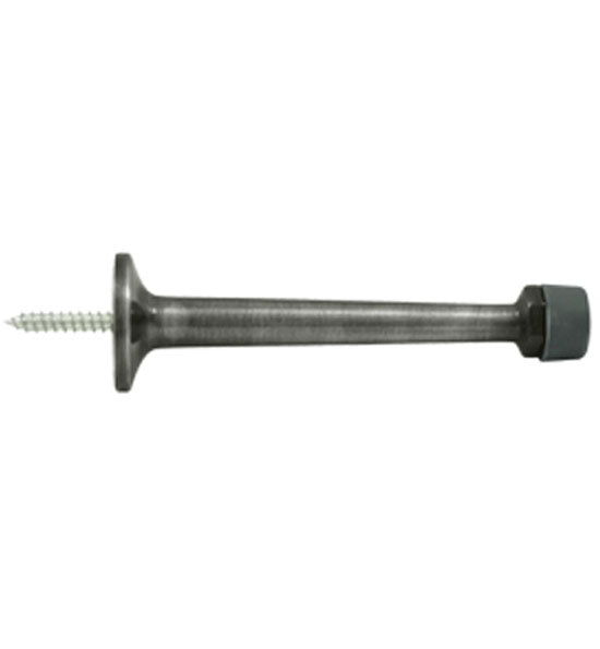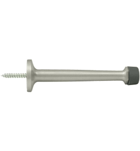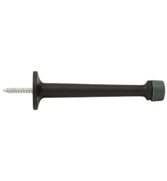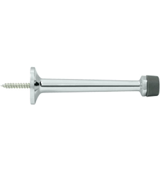 This baseboard door bumper measures 4 inches long and comes with 2 rubber tips. This style of door stop provides protection for the door by preventing it from banging against a wall causing damage to drywall or plaster and paint. This door stop is available in many designer finishes including Polished Brass, Unlacquered Brass, Antique Brass, PVD Lifetime Polished Brass, Oil Rubbed Bronze, Polished Nickel, Brushed Nickel, Antique Nickel, Flat Black, Polished Chrome, and Brushed Chrome. Comes complete with the mounting hardware. The average lead time for this particular product is 3 to 5 Business Days.