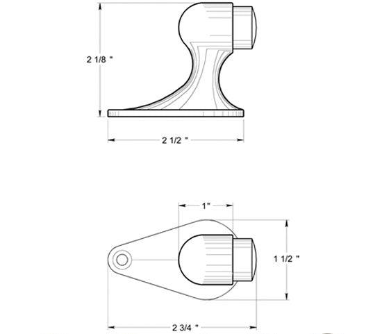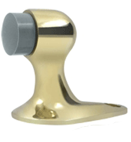 This solid brass floor mounted bumper door stop measures 2 1/8 inch tall and 2 3/4 inch in projection. It also comes complete with the mounting screws. This style of door stop provides protection for the door by preventing it from banging against a wall causing damage to drywall or plaster and paint. This door stop is available in many designer finishes including Polished Brass, Unlacquered Brass, Antique Brass, Lifetime Polished Brass, Oil Rubbed Bronze, Flat Black, Polished Chrome, Brushed Nickel, Brushed Chrome, and Antique Nickel. Comes complete with the mounting hardware. The average lead time of this particular product is 2 to 4 Business Days.