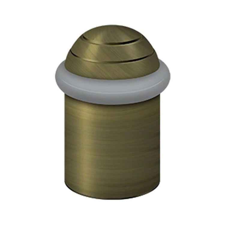 This solid brass universal round shape modern floor mounted bumper measures 2 inches tall and 1 3/16 inch in diameter (the rubber extends the diameter to 1 3/8 inch). It also comes complete with the mounting screws. This style of door stop provides protection for the door by preventing it from banging against a wall causing damage to drywall or plaster and paint. This door stop is available in many designer finishes including Polished Brass, Antique Brass, Lifetime Polished Brass, Oil Rubbed Bronze, Flat Black, Polished Chrome, Brushed Nickel, Brushed Chrome, and Antique Nickel. Comes complete with the mounting hardware. The average lead time for this particular product is 2 to 4 Business Days.