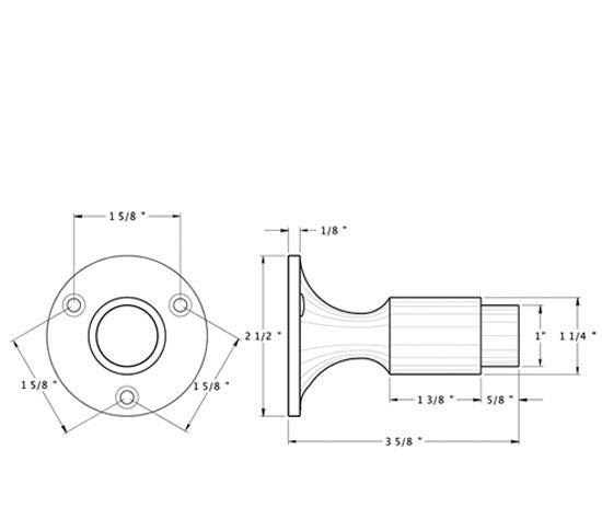 This door stop measures 3 5/8 inch tall. It also comes complete with the mounting screws. This style of door stop provides protection for the door by preventing it from banging against a wall causing damage to drywall or plaster and paint. This door stop is available in many designer finishes including Polished Brass, Antique Brass, Lifetime Polished Brass, Oil Rubbed Bronze, Flat Black, Polished Chrome, Brushed Nickel, Brushed Chrome, and Antique Nickel. Comes complete with the mounting hardware. The average lead time for this particular product is 3 to 5 Business Days.