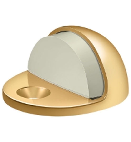 This solid brass universal round shape modern floor mounted bumper measures 1 inch tall and 2 inch in diameter (the rubber extends the diameter to 1 3/8 inch). It also comes complete with the mounting screws. This style of door stop provides protection for the door by preventing it from banging against a wall causing damage to drywall or plaster and paint. This door stop is available in many designer finishes including Polished Brass, Antique Brass, Lifetime Polished Brass, Oil Rubbed Bronze, Flat Black, Polished Chrome, Polished Nickel, Brushed Nickel, Brushed Chrome, and Antique Nickel. Comes complete with the mounting hardware. The average lead time for this particular product is 2 to 4 Business Days.