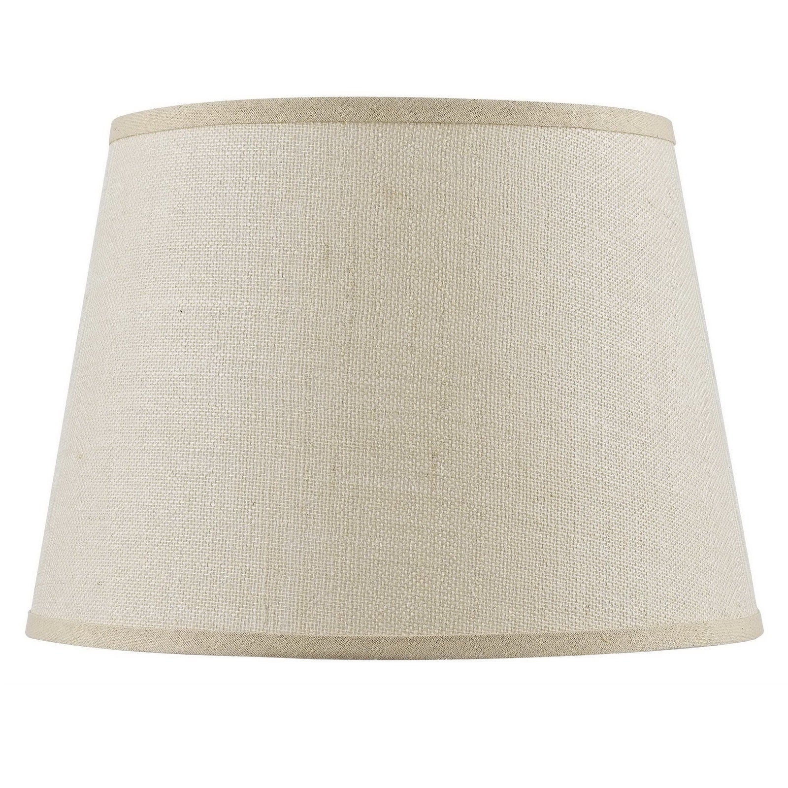 The Hardback Fine Burlap Shade (Product No. SH-8111-17) is an ideal choice for enhancing your space with a touch of rustic elegance. Constructed from durable fabric, this shade features a spider type fitter and a sturdy hardback frame. Measuring 12 inches in height and presented in a light tan burlap finish, it ships in one carton with little to no assembly required, making it a convenient addition to your decor. Enjoy peace of mind with a one-year warranty, as this product is guaranteed to be free from defects in material and workmanship.