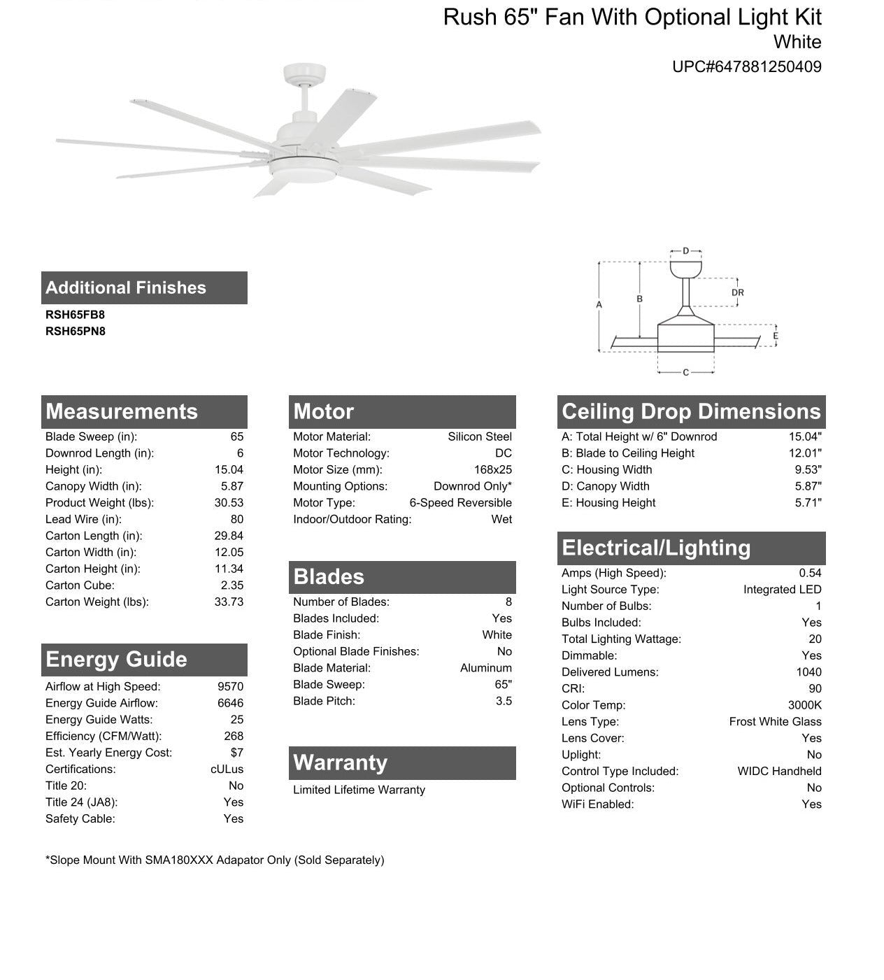 Blade Sweep Opt (in.) 65