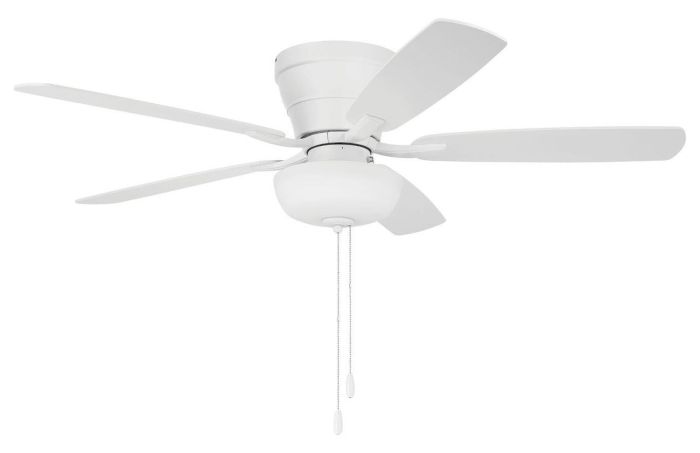 The Wheeler 52" indoor flushmount ceiling fan with bowl light kit by Craftmade combines classic style with low ceiling compatibility. Featuring custom reversible blades, this efficient pull chain controlled, 3-speed, reversible motor with included optional bowl light kit with 2 x 9W dimmable LED bulbs included.