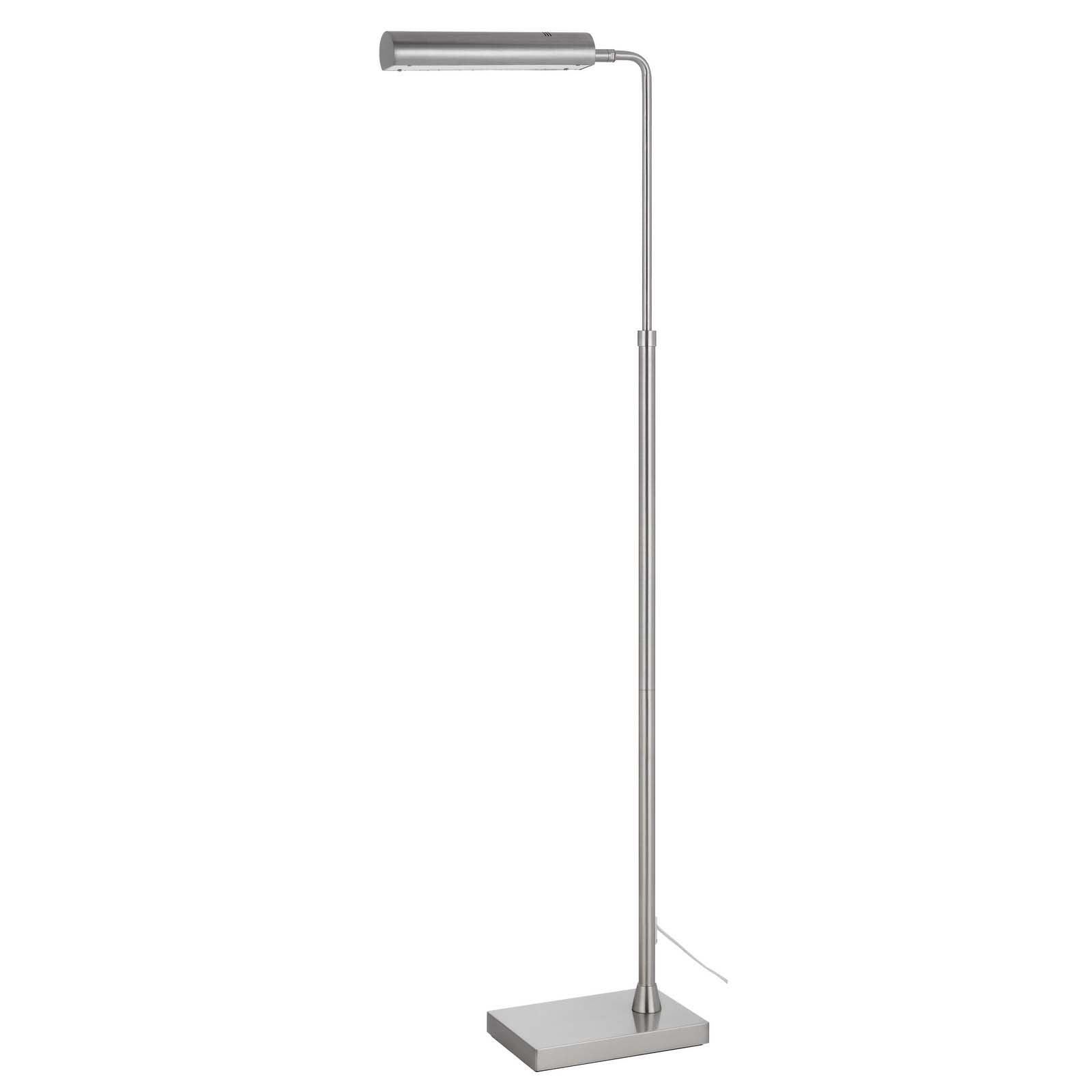 The Delray 17W integrated LED floor lamp (Product No. BO-3133FL-BS) is a stunning addition to any living space, combining functionality with elegance. It features durable metal construction and a 3000K color temperature for warm illumination. This non-dimmable lamp boasts an adjustable height ranging from 44 to 58 inches, allowing for optimal light control. With a weighted base for enhanced stability, it ships in one carton and requires little to no assembly. The rocker switch located on the lamp's head adds convenience, making this lamp a versatile option for compact areas.