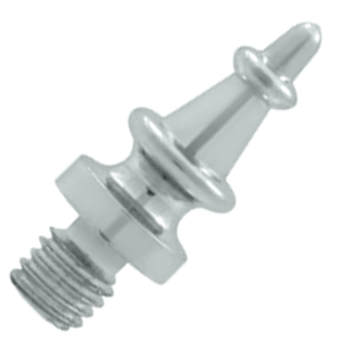 Measures 5/8 inches and features a steeple tip. Available in several finishes including polished brass, antique brass, oil rubbed bronze, polished chrome and brushed nickel. Fit interchangeably with most Deltana solid brass hinges except for 6"x6" hinges. The average lead time for this finial is approximately 5 to 10 business days.