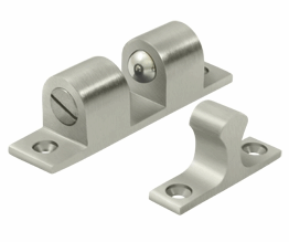 The Deltana ball catch shown here are most frequently used for cabinet doors, closets or other household items. Measure 3 inches wide by 3/4 inches tall and are adjustable. Comes in a variety of finishes including polished brass, antique brass, oil rubbed bronze, polished chrome and brushed nickel. The average lead time for this catch is approximately 3 to 5 business days.