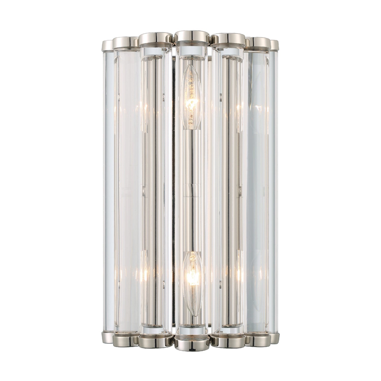 The Elliot collection, designed by Libby Langdon, is a sleek and almost masculine collection featuring a series of chunky Lucite rods and a polished nickel frame to highlight the shape. The fixture's view from below is as important as what it looks like from the side. The metal work follows the shape of the circular rods creating a scallop pattern. The filtered light bounces between the Lucite rods and gives off a beautiful glow. Architectural in nature, the Elliot is a modern take on a crystal-style wall mount.