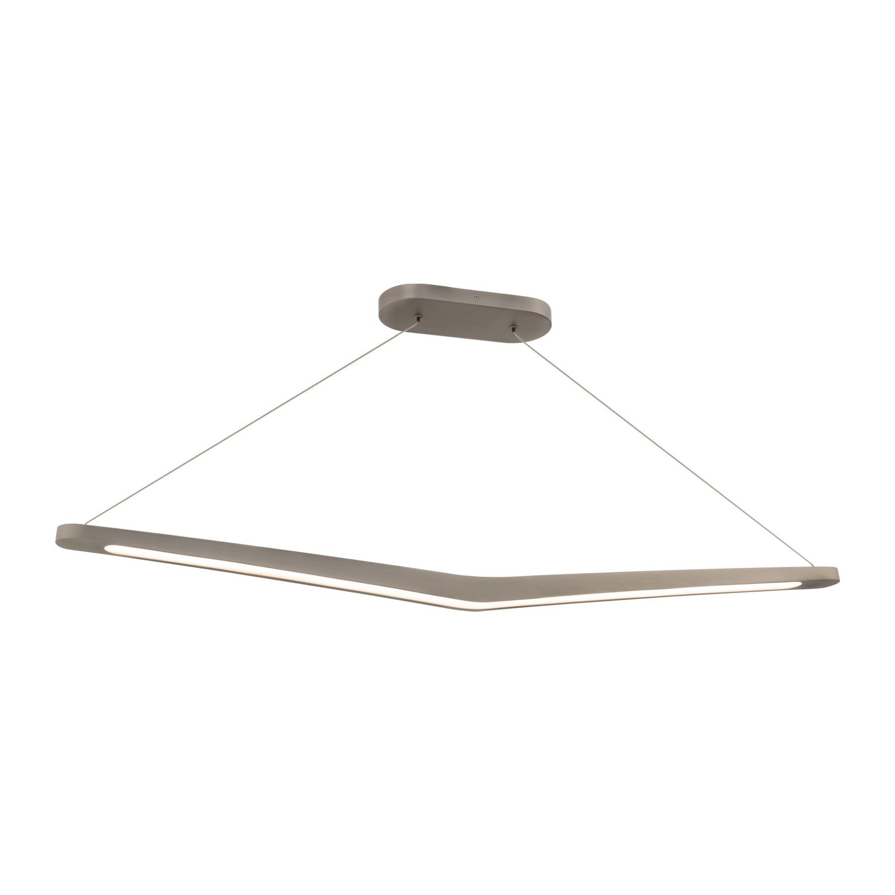 Alleron 46in LED Linear Pendant 4000K in Brushed Nickel. Take flight. Cambered wings skim through the air, delivering a diffused downward glow. Featuring an aluminum body with an acrylic diffuser Ultra-sleek electrified cable eliminates the need for clunky power wires. Height is simple to adjust through push pin connectors on the canopy. Universal Input Voltage Driver (120V-240V-277V) installed in junction box. Smooth and continuous dimming with an electronic low voltage (ELV), or TRIAC dimmer. High Powered Replaceable LED Module CRI: 90, Rated Hours: 50,000, Selectable Color Temp: 2700K-3000K-3500K-4000K Standards: ETL & cETL UL 1598 listed for Damp Locations.