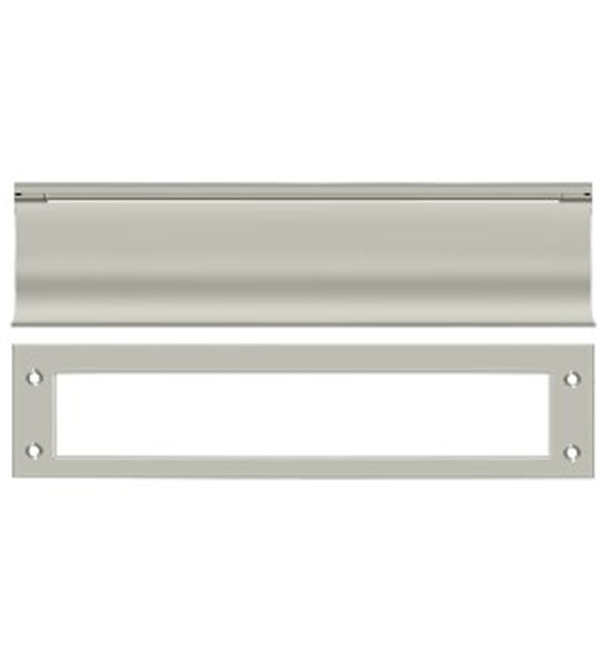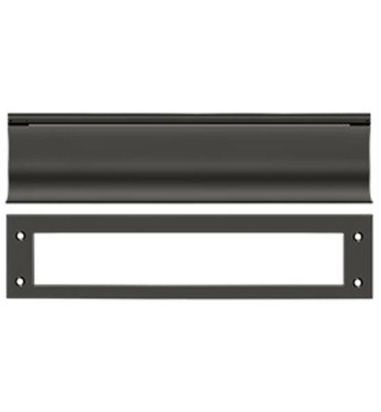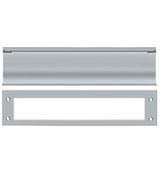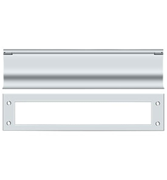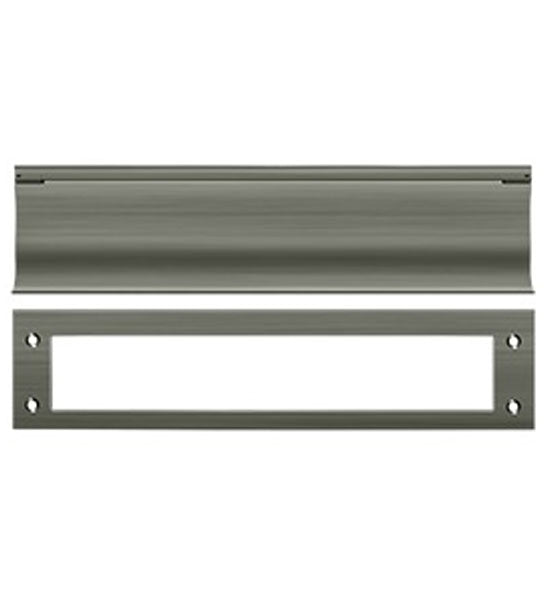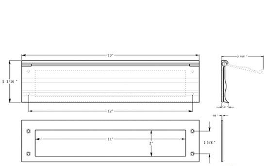 This mail slot measures 3 1/16 inches by 13 inches. This slot has an opening of approximately 11 inches wide and 2 inches tall. Comes with both sides. Exterior flap is spring-loaded and this comes with a back finish plate. For use on both wood and metal doors. Available in Polished Brass, Antique Brass, Lifetime Polished Brass, Oil Rubbed Bronze, Flat Black, Polished Chrome, Brushed Nickel, Brushed Chrome, and Antique Nickel. Comes complete with the mounting hardware. The average lead time for this particular product is 3 to 5 Business Days.