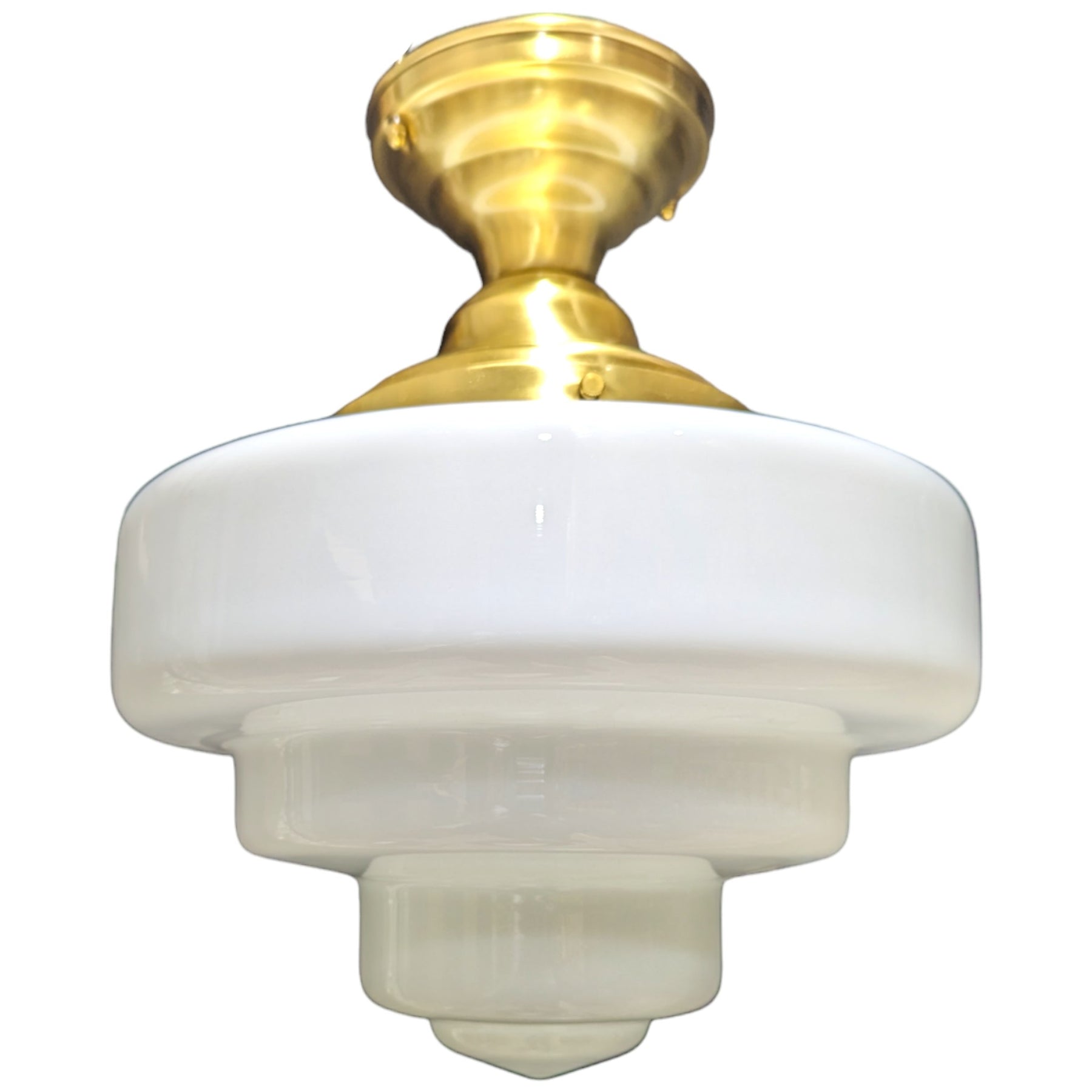 The 15 1/2 Inch Manhattan Skyscraper Nouveau Style Semi-Flush Mount Light, with its graceful traditional lines and Satin Brass finish, will bring sophistication and grandeur to your home. Its tasteful design and stately construction make this light fixture the perfect centerpiece in any room.
