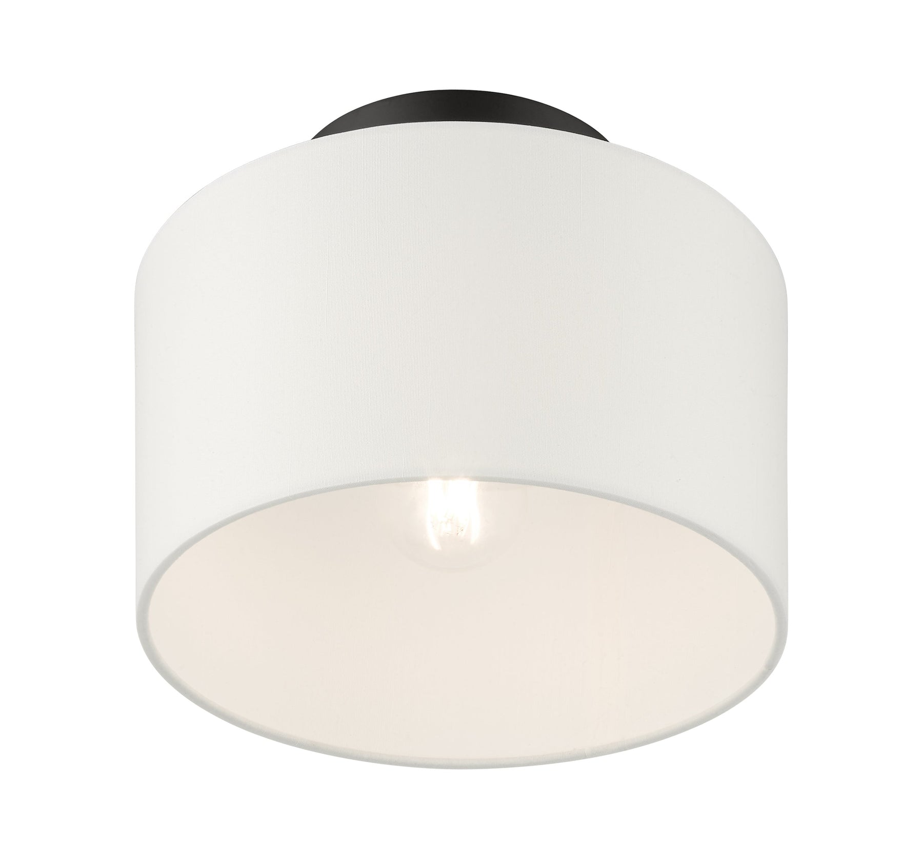 The Meridian 41095-04 Small Semi-Flush Mount is a sophisticated lighting fixture that boasts a timeless and versatile design. Featuring a hand-crafted off-white fabric hardback shade, this elegant piece provides warm, diffused lighting. With a height of 8.5 inches and a diameter of 10 inches, it is compact yet impactful, ideal for enhancing spaces such as hallways, bathrooms, kitchens, or small bedrooms. The fixture is finished in a sleek black, adding a touch of modern charm. It requires one medium base bulb (not included) with a maximum wattage of 60W and is suitable for damp locations, making it perfect for various areas of your home.