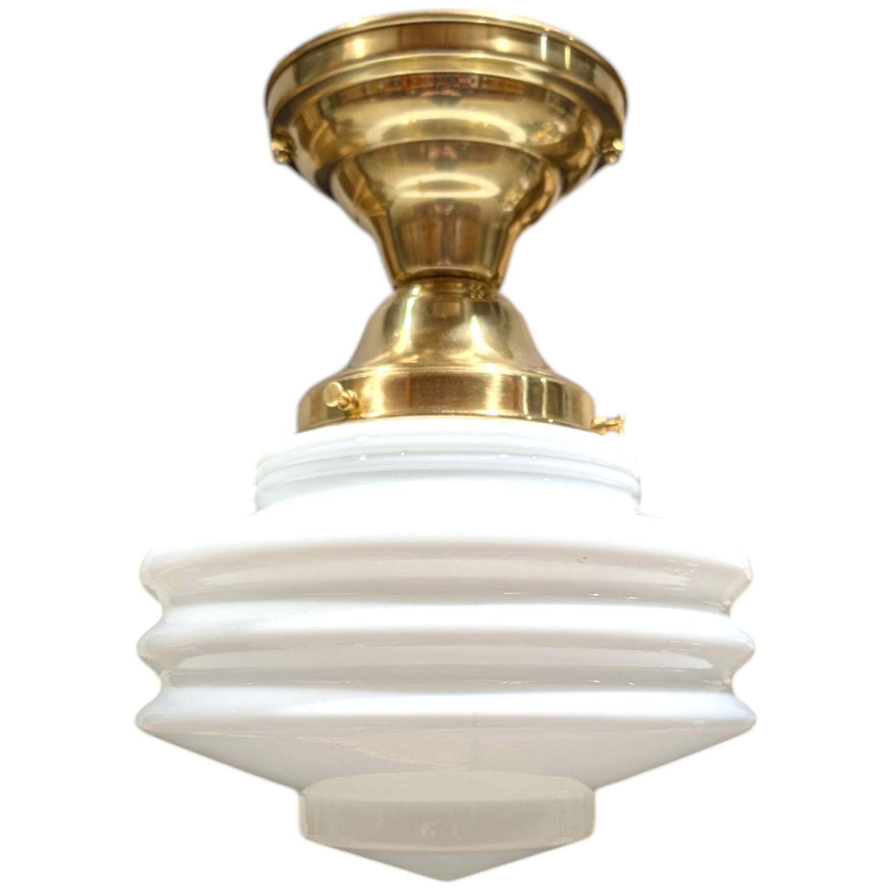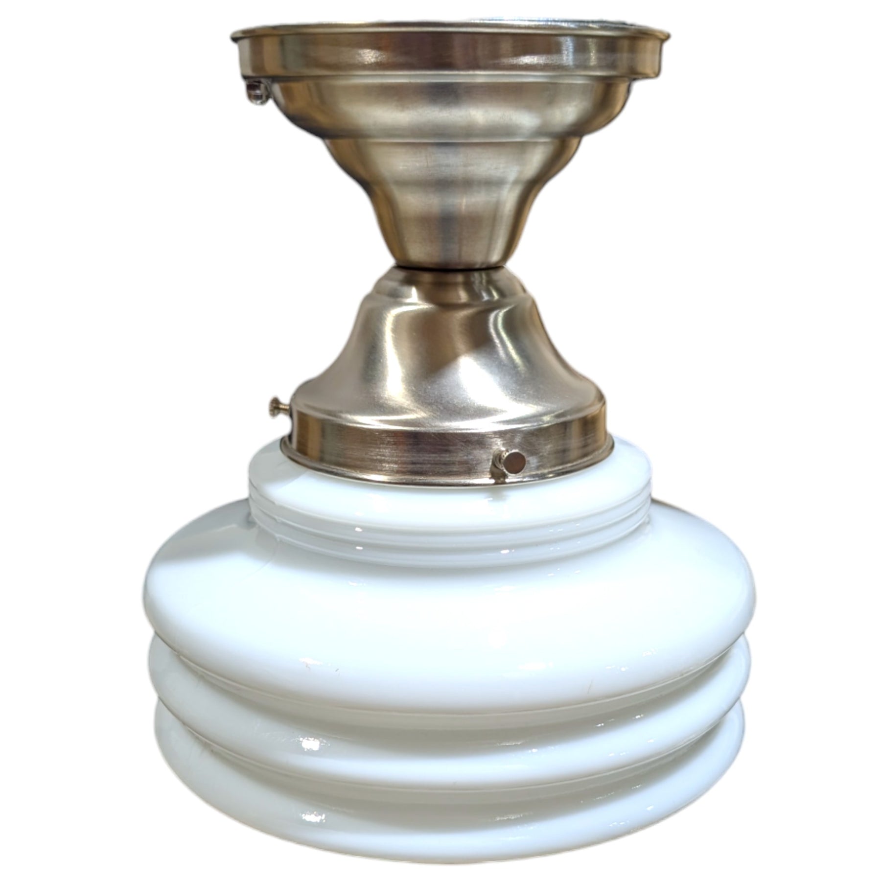 Bring timeless elegance to your space with this stunning Art Deco-inspired ceiling light. Featuring a beautifully crafted ribbed opal glass shade, this fixture adds a perfect blend of vintage charm and modern sophistication to any room. Its versatile design makes it an ideal choice for kitchens, hallways, or any space where classic style meets functionality.
