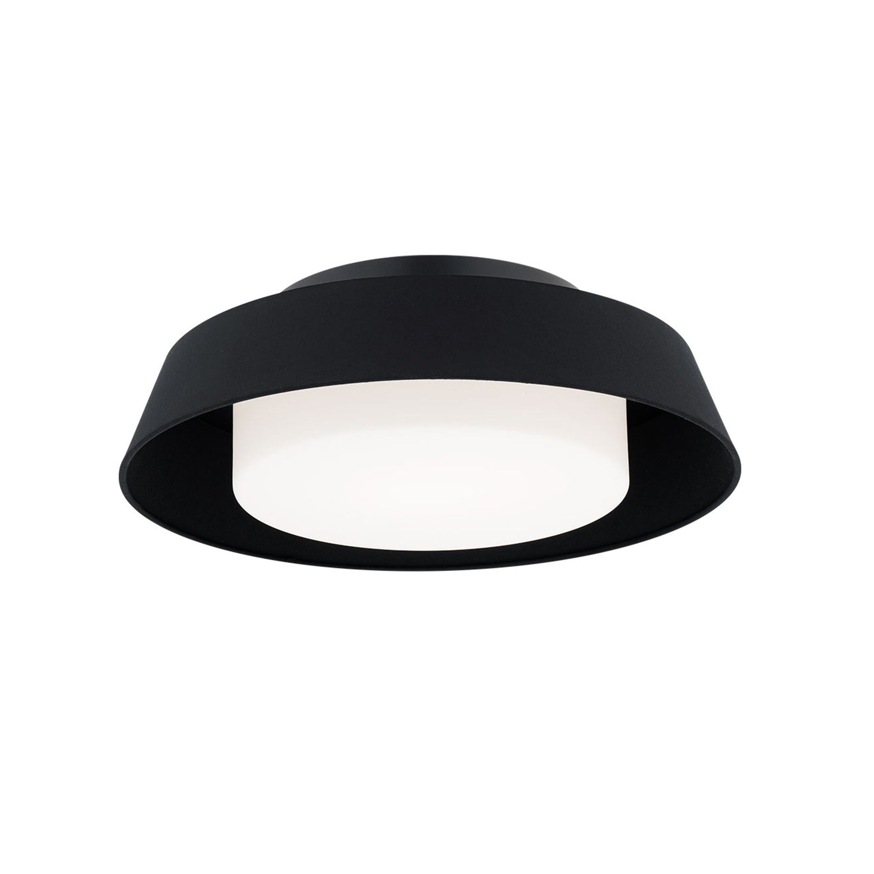 Chapeau 16in LED Flush Mount 2700K in Black. A fabric shade caps a white, etched opal diffuser, bringing timeless elegance to rooms graced with its presence. Featuring aluminum construction, a fabric shade, and glass diffuser Chapeau damp location listed - it can be used indoor or covered outdoor areas Equipped with a 120V AC input LED driver that is concealed within the canopy for easy installation over a standard or pancake junction box. Smooth and continuous dimming with an electronic low voltage (ELV) or TRIAC dimmer. High Powered Replaceable LED with CRI: 90, Rated Hours: 50,000, Selectable Color Temp: 2700K-3000K-3500K-4000K Standards: ETL & cETL UL 1598 listed for Damp Locations. CEC Title 24 Compliant, and ADA Compliant.