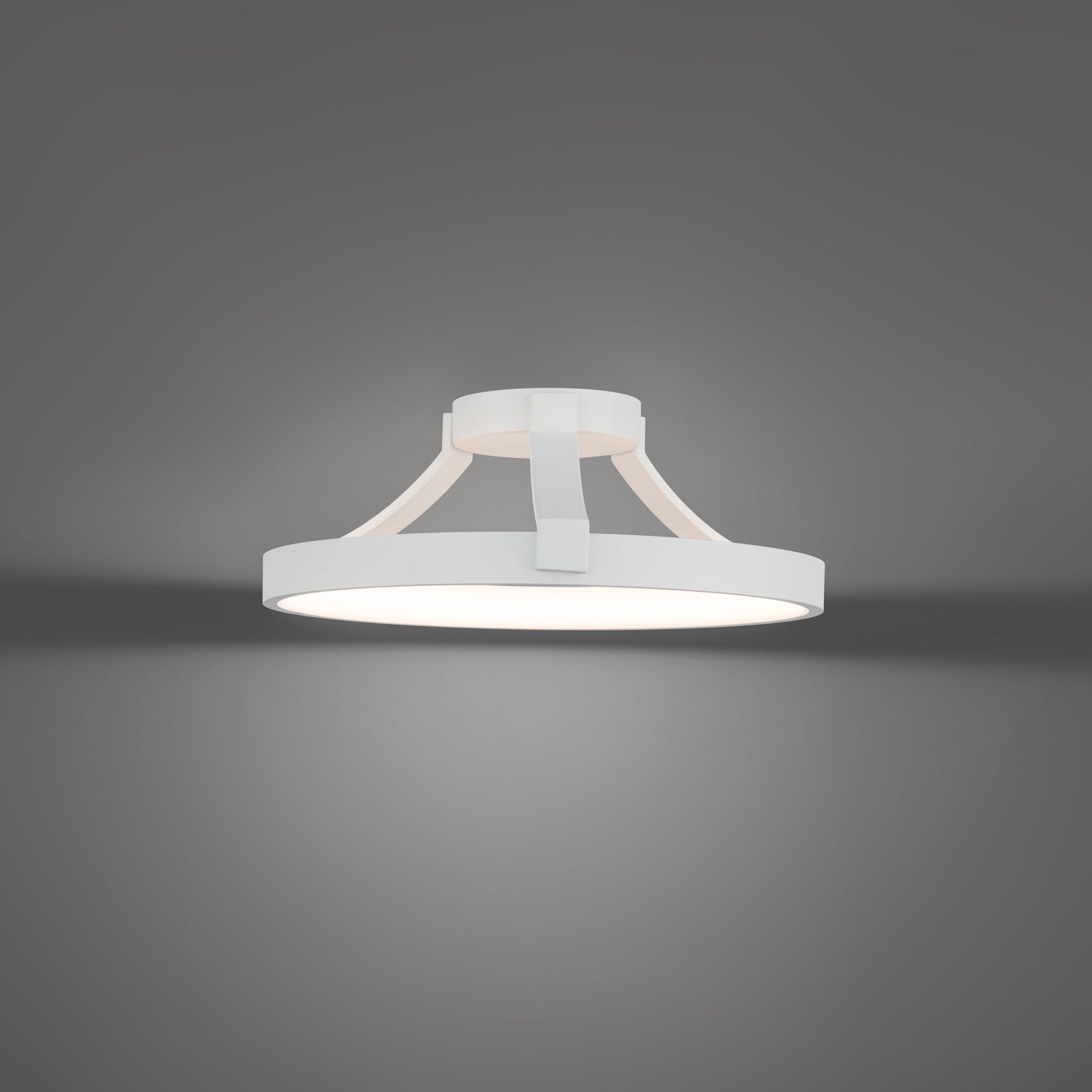 Chaucer 16in LED Semi-Flush Mount 3000K in Black. Modern minimalism comes to light with robust black aluminum and powerful LEDs embedded within the diffuser. Chaucer is available in three stunning architectural finishes of matte black and white. This LED luminaire conceals a 120-220-277 universal input voltage driver and may be mounted on either the ceiling or wall. The light is dimmed with an electronic low voltage or TRIAC dimmer. High quality LEDS offer a soft white 3000K color temperature at a high 90 color rendering index and a long 50,000 hour life. This LED luminaire uses just 24 watts and delivers over 1200 lumens. A simple, clean ring design with an aluminum construction and a silicone diffuser that provides an abundance of ambient light. Chaucer is damp location listed - it can be used indoor or covered outdoor areas. This fixture can be mounted on a wall or ceiling to suit any application. Universal Input Voltage Driver (120V-240V-277V) concealed in fixture. Sloped ceiling compatible. Smooth and continuous dimming with electronic low voltage ELV, 0-10V, and TRIAC dimmer options. High Powered Replaceable LED Module CRI: 90, Rated Hours: 50000, Color Temp: 3000K Standards: ETL & cETL UL 1598 listed with IP44 rating for Damp Locations. CEC Title 24 compliant.