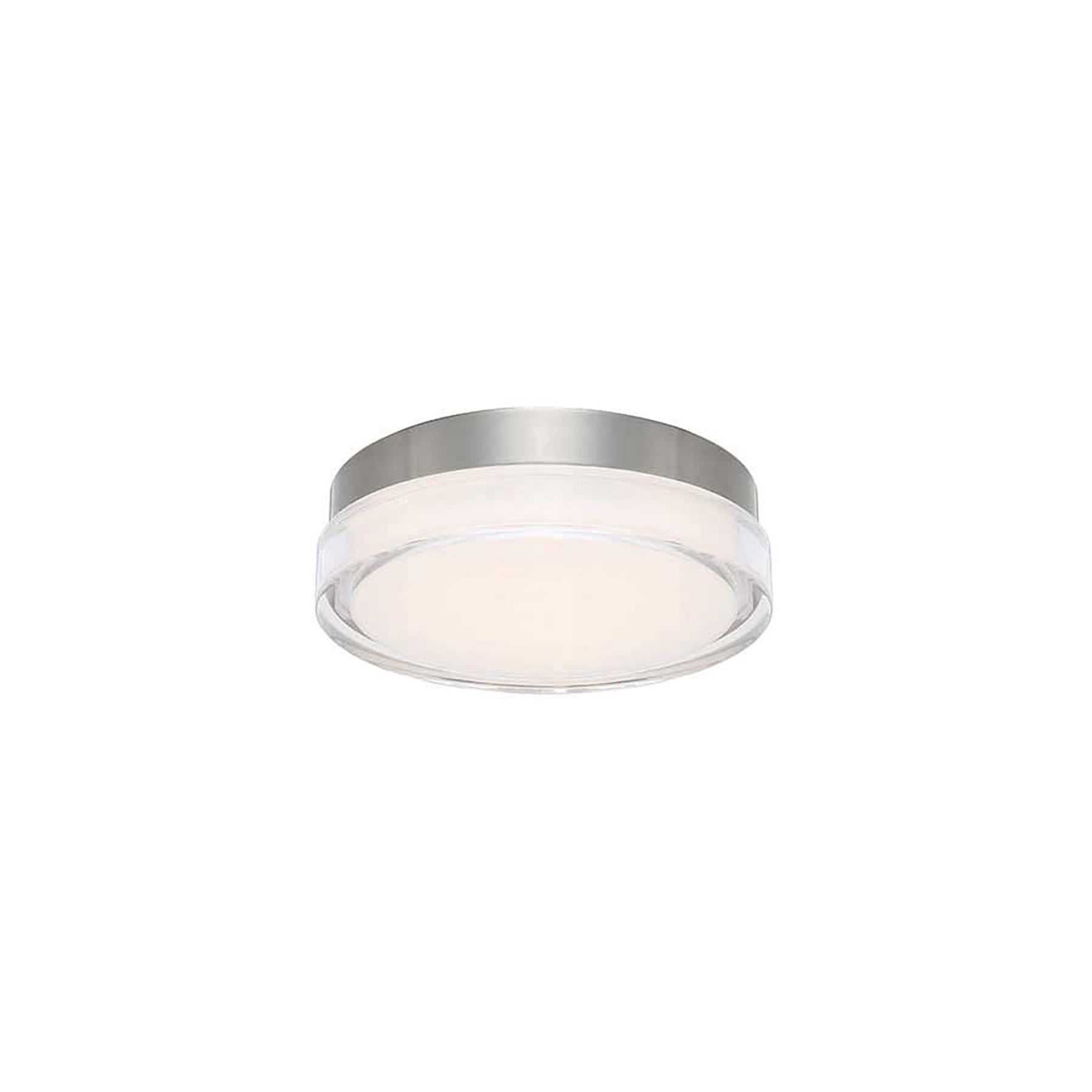 Dot 6in LED Flush Mount 3000K in Stainless Steel. Dot's finely crafted diffuser amplifies the brightness on this durable waterproof outdoor flush mount while also showing off its impressive heft and depth. Rendered in highly durable marine-grade stainless steel, Dot withstands the toughest conditions but can also complement interior metal finishes just as well. Energy efficient integrated LED's provide a long-lasting maintenance-free bright and even illumination. Available in a 316 marine grade stainless steel (SS) or powder coated aluminum (BK) construction. Lightweight injection-molded acrylic diffuser for bright and even illumination. 120V AC LED Technology, no transformer or driver needed. 277V option is available by special order. Smooth and continuous dimming with an electronic low voltage (ELV) dimmer. High Powered Replaceable LED Module CRI: 90, Rated Hours: 50,000, Color Temp: Available in 2700K, 3000K, 3500K - select the correct CCT. Standards: ETL & cETL UL 1598, IP65 listed for Wet Locations. Energy Star Rated, CEC Title 24 Compliant, and ADA Compliant.