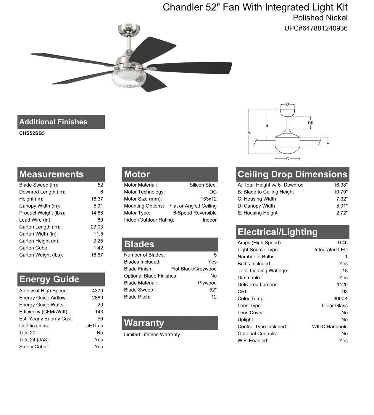 Blade Sweep Opt (in.) 52