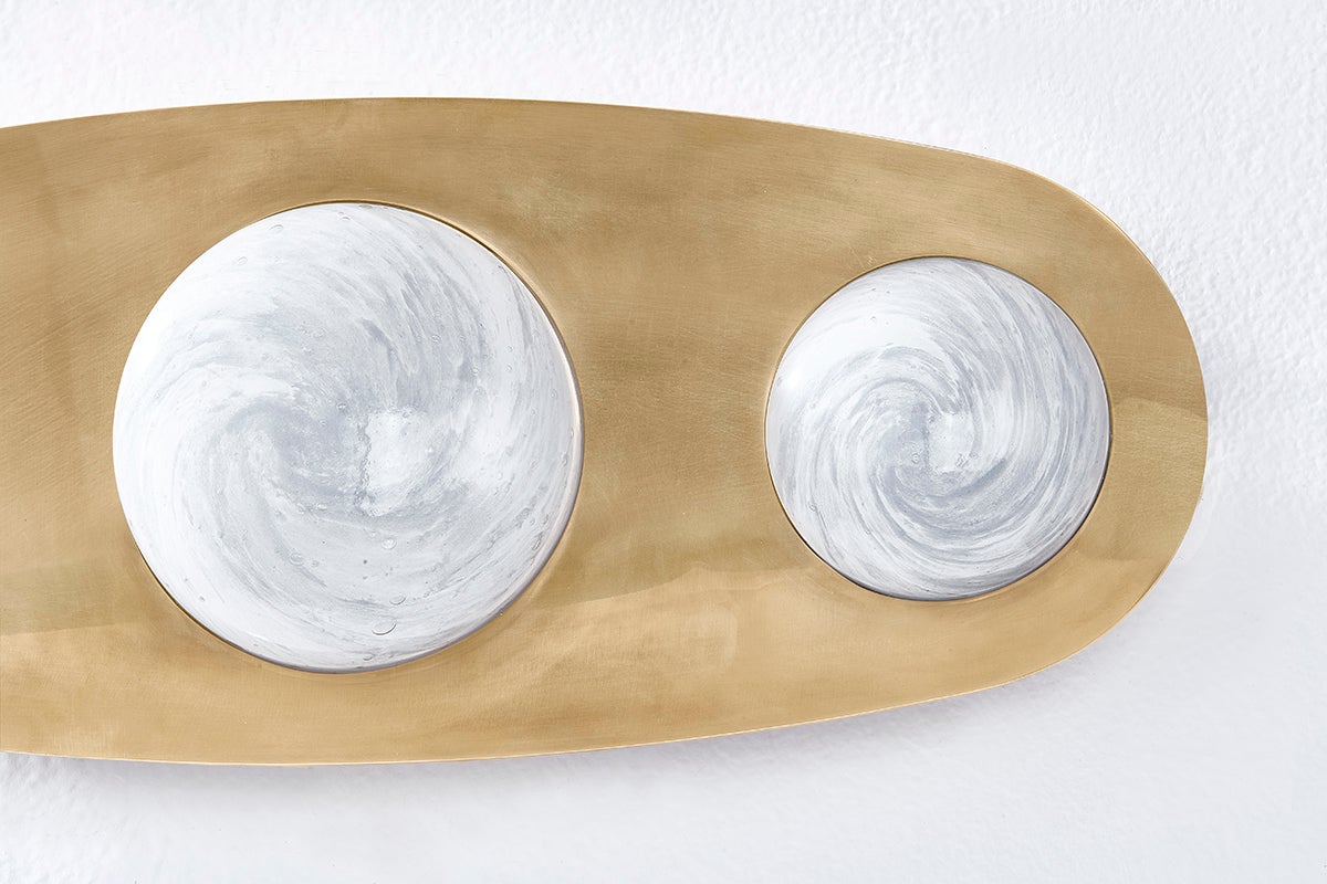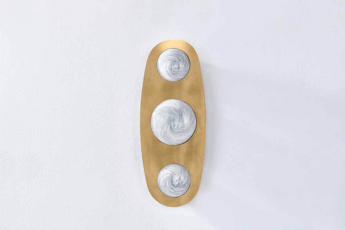 The Corbett Lighting BEZEL Wall Sconce is a stunning blend of functionality and elegance, featuring a vintage brass finish that complements its classic design. This sconce requires three integrated LED lamps, delivering a maximum wattage of 17.0W. It boasts a diameter of 7.00 inches, a height of 18.00 inches, and an extension of 2.50 inches, making it ideal for various spaces. The glass shade provides soft light with an impressive CRI of 90 and a warm color temperature of 2700K, emitting 350 lumens. Although not Title 24 compliant, the sconce is perfect for enhancing the ambiance in both indoor and covered outdoor areas.