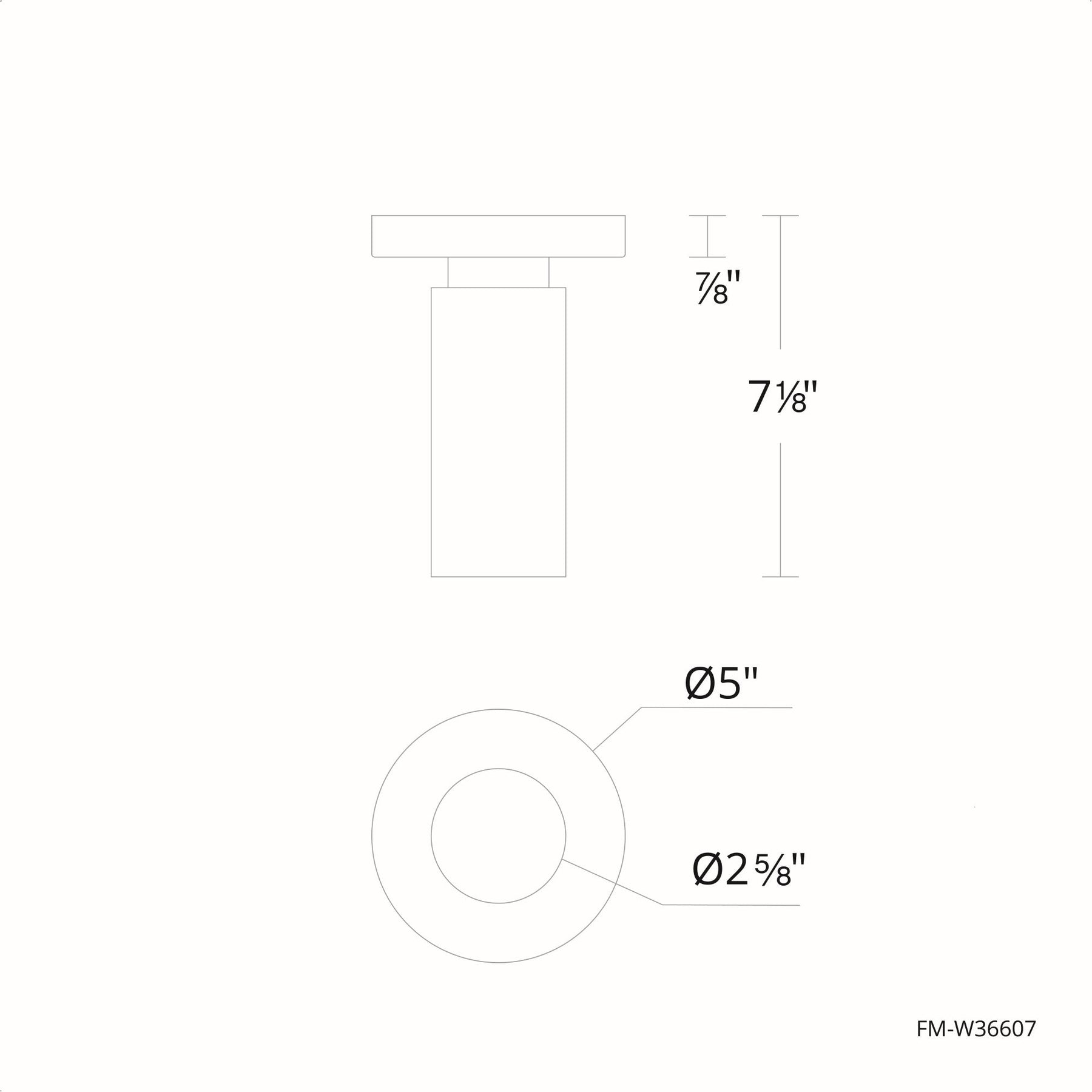 Caliber 5in LED Flush Mount 3000K in Brushed Aluminum. Light projection tuned with precision. The Caliber outdoor ceiling mount joins a family of wall lights and a single pendant. With cylindrical aluminum body construction and acrylic diffuser built to withstand the elements, casting a clear downward beam of light. Caliber is wet location listed - it can be used indoor or outdoor. This fixture can be mounted only on the ceiling. Universal Input Voltage Driver (120V-240V-277V) concealed in fixture. Smooth and continuous dimming with electronic low voltage 0-10V, ELV,TRIAC dimmer options. High Powered Replaceable LED Module CRI: 90, Rated Hours: 50000, Color Temp: 3000K Standards: ETL & cETL UL 1598 listed with IP65 rating for Wet Locations. CEC Title 24 compliant.